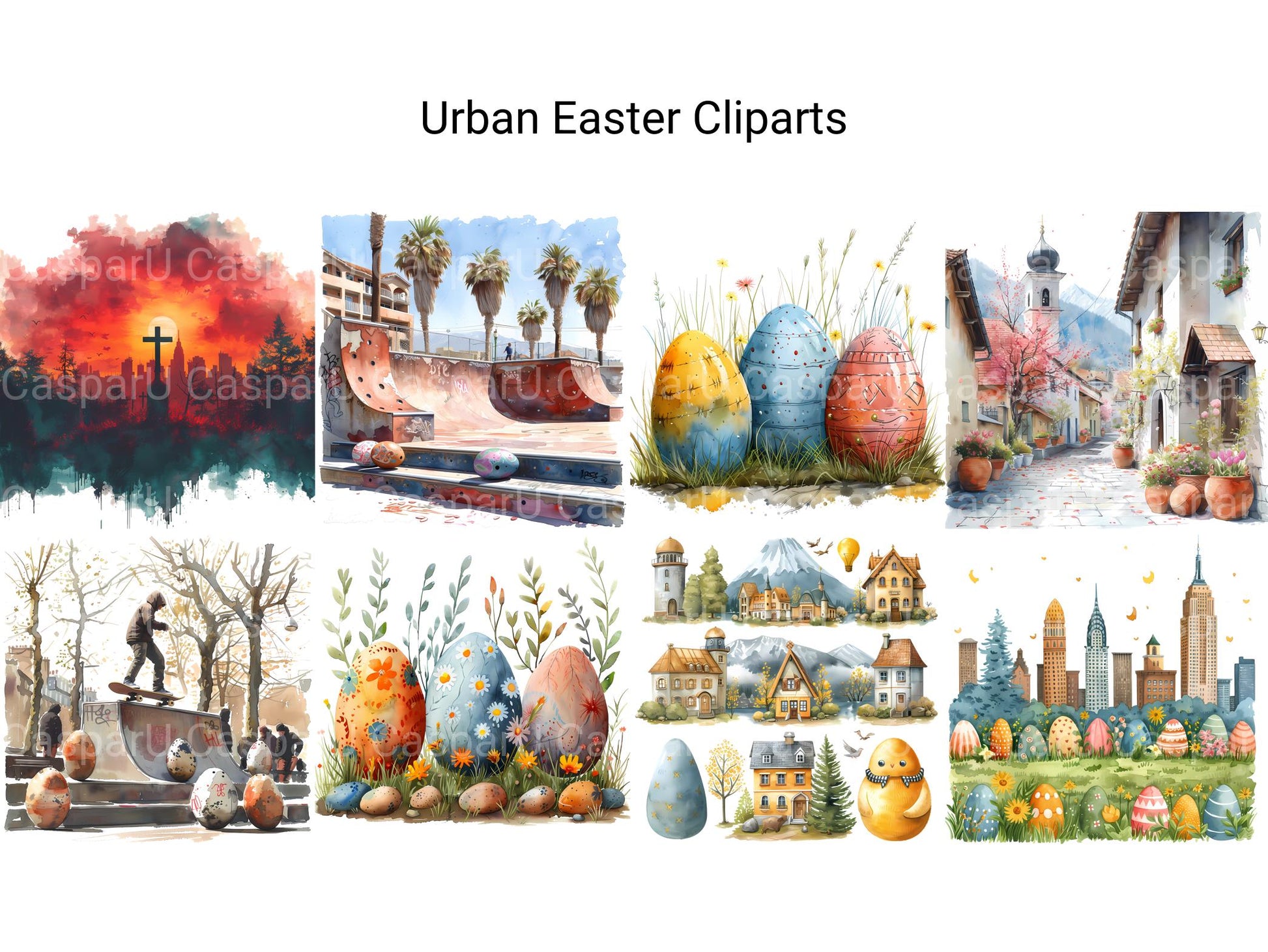 Embrace the hustle and bustle of city life with Urban Easter digital clip art, featuring urban-inspired illustrations, cityscapes, and modern motifs that capture the energy of Easter in the city. These dynamic images infuse Easter with an urban edge and contemporary style, perfect for adding a dose of city chic to your projects. Let Urban Easter take you on a journey through the urban landscape and infuse your designs with the vibrant spirit of the city this Easter.