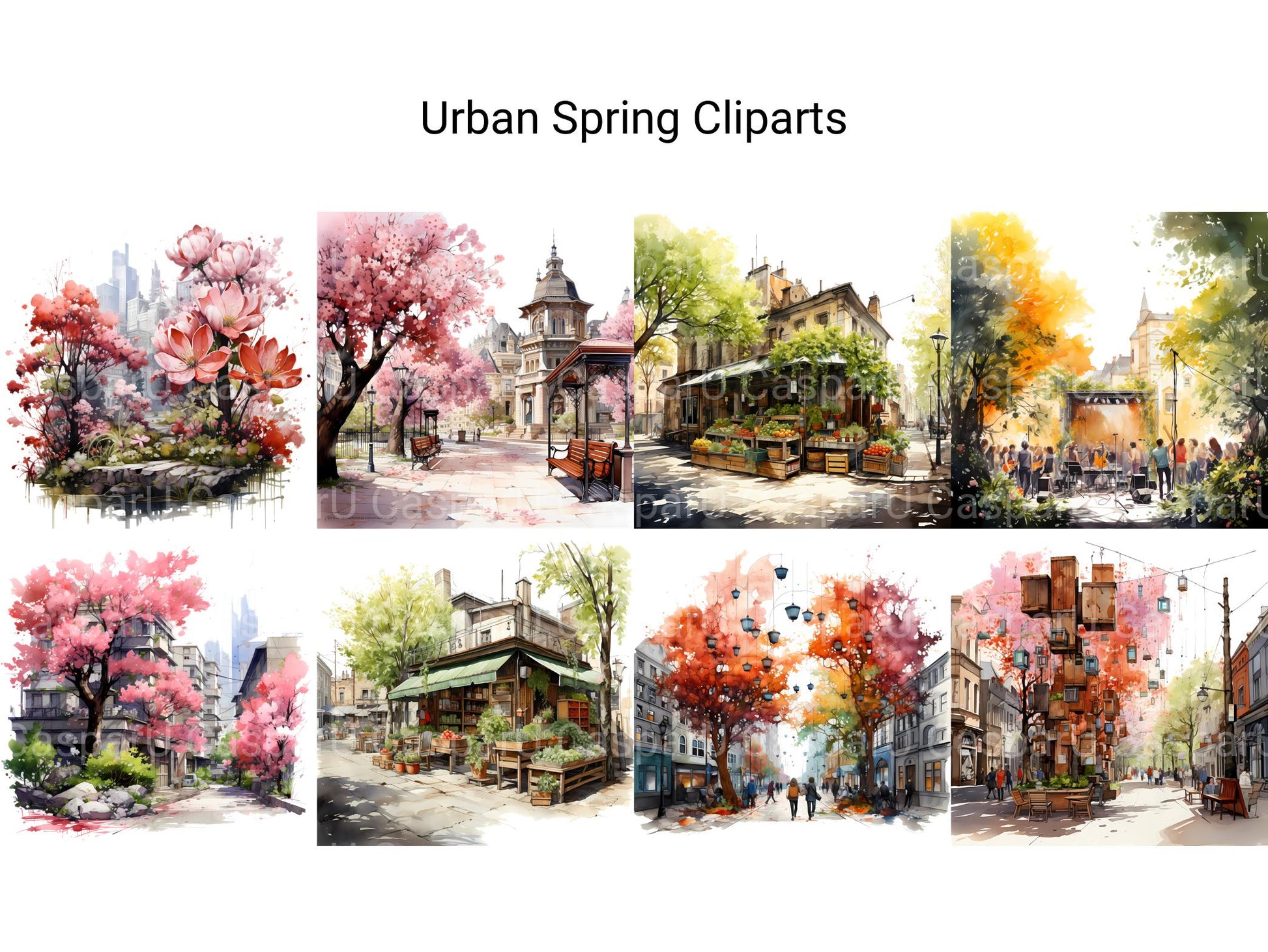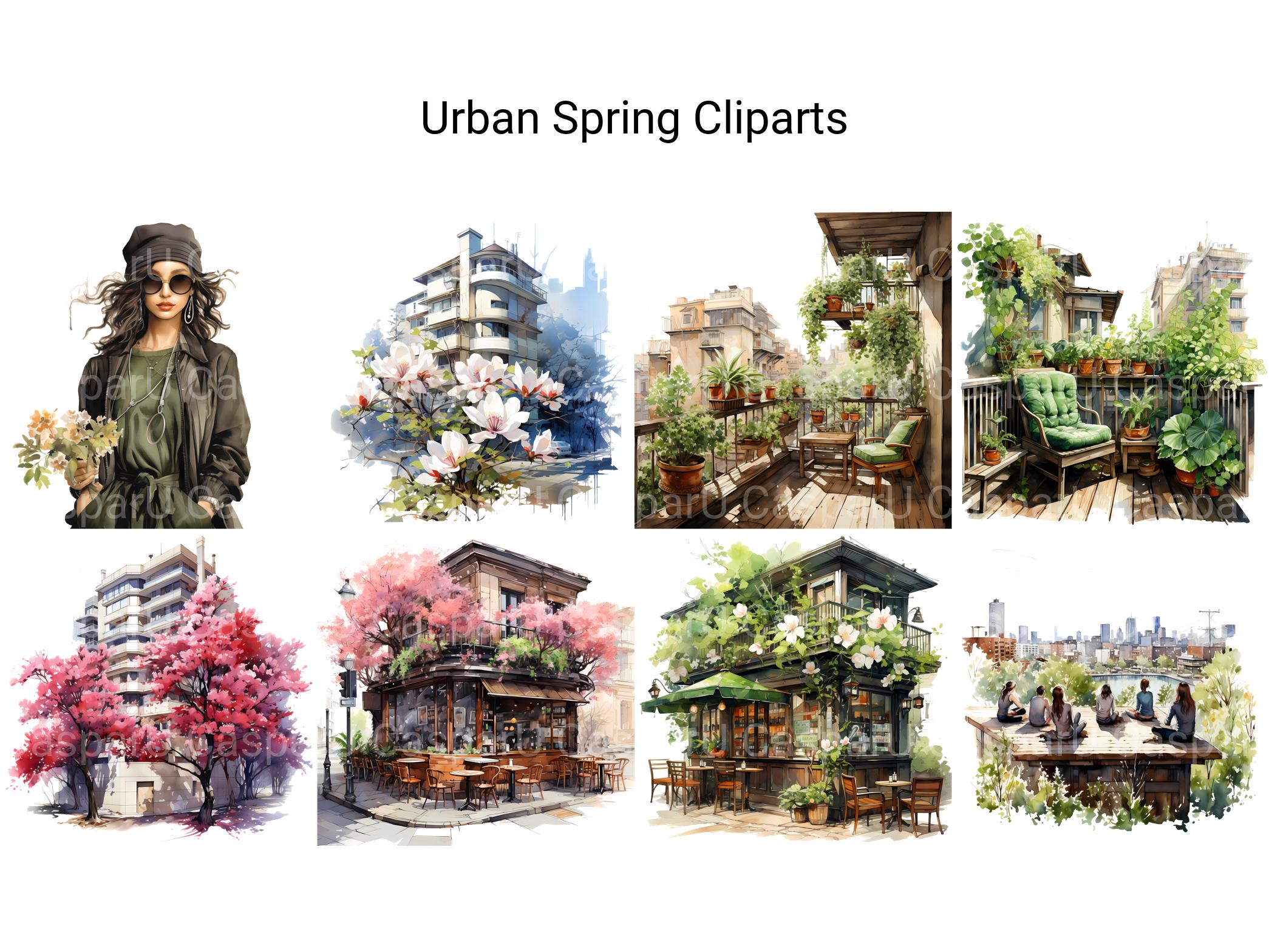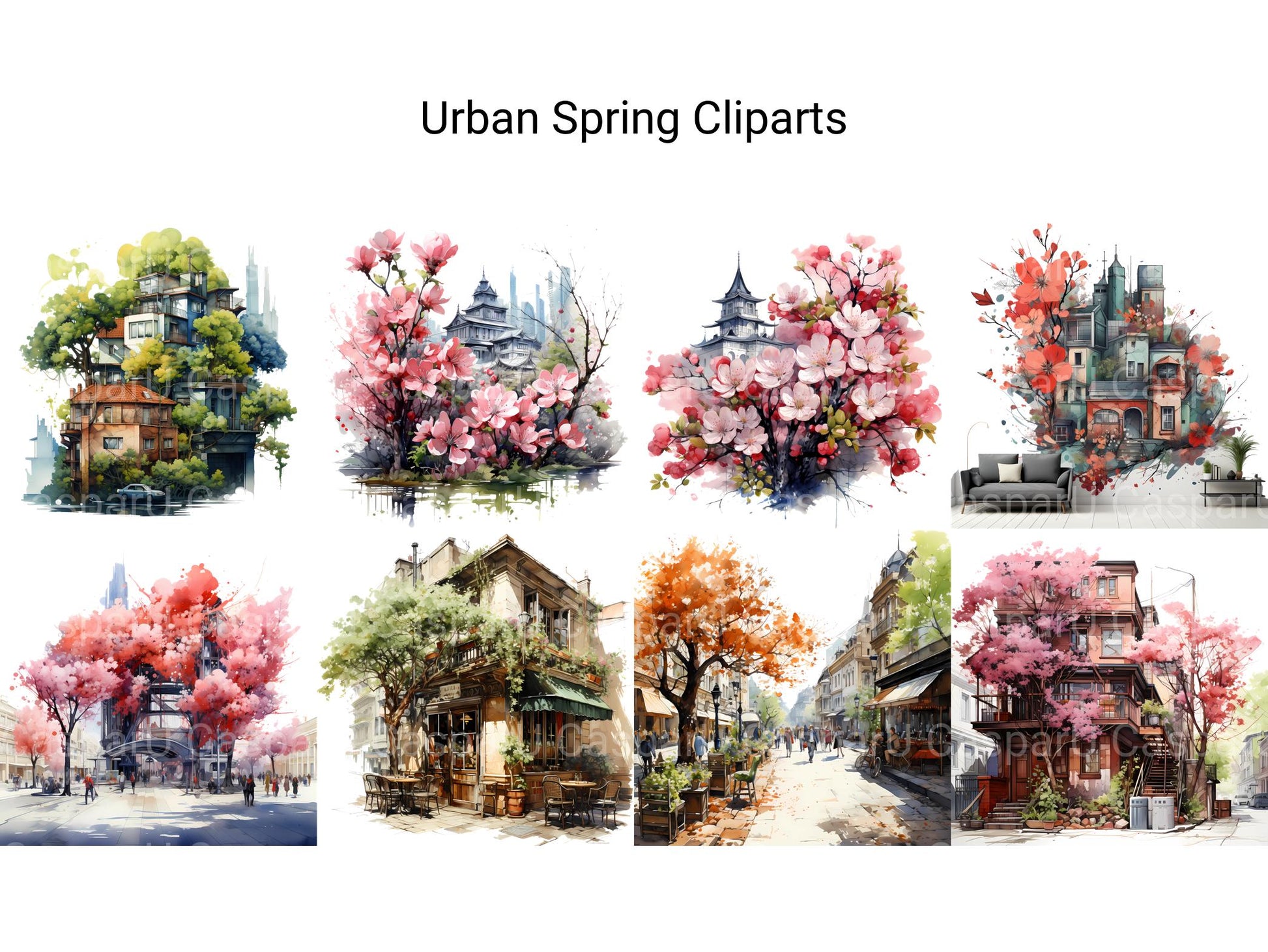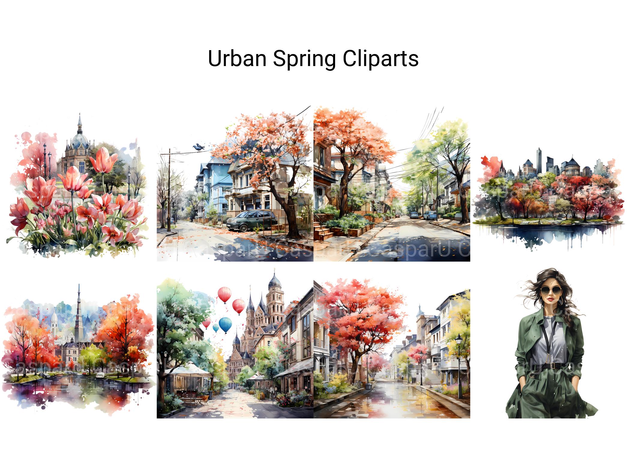 Explore the bustling energy and dynamic landscapes of city life with Urban Spring digital clip art, featuring skyscrapers, street scenes, and bustling city streets awash in the colors and vitality of spring. These captivating images capture the urban landscape in bloom, perfect for adding a touch of metropolitan flair to your projects. Let Urban Spring immerse you in the sights and sounds of the city, inviting viewers to experience the excitement and vibrancy of urban living amidst the beauty of springtime.