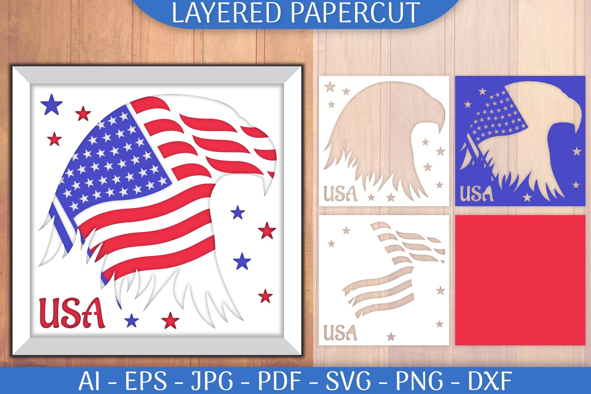 USA Flag Eagle Head Layered Papercut SVG Bundle