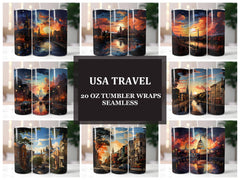 Explore the iconic landmarks and scenic beauty of the United States with our USA Travel seamless tumbler wraps. Featuring stunning illustrations of famous cities and natural wonders, these wraps invite you to discover the diverse landscapes and cultural landmarks of America. Whether you're a traveler or a patriot, let these wraps adorn your tumbler and make every sip a celebration of the vibrant spirit and breathtaking landscapes found throughout the USA.