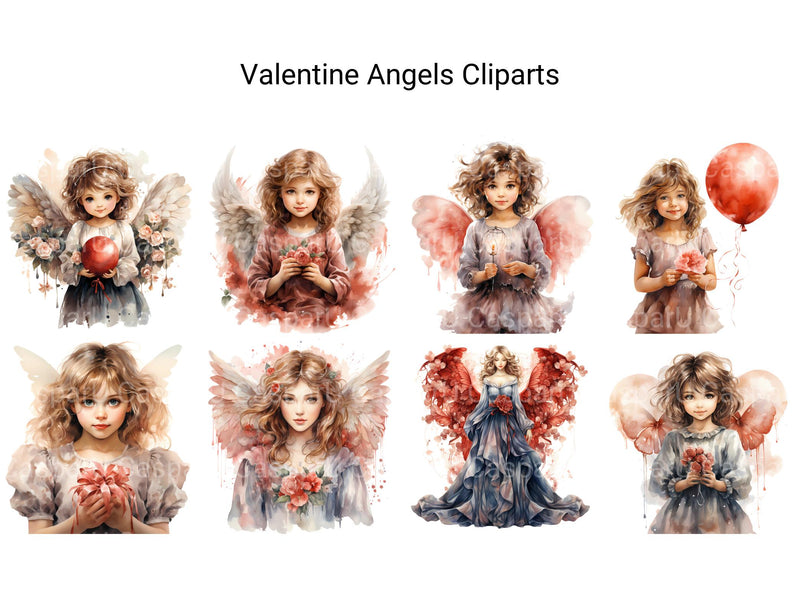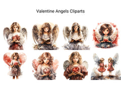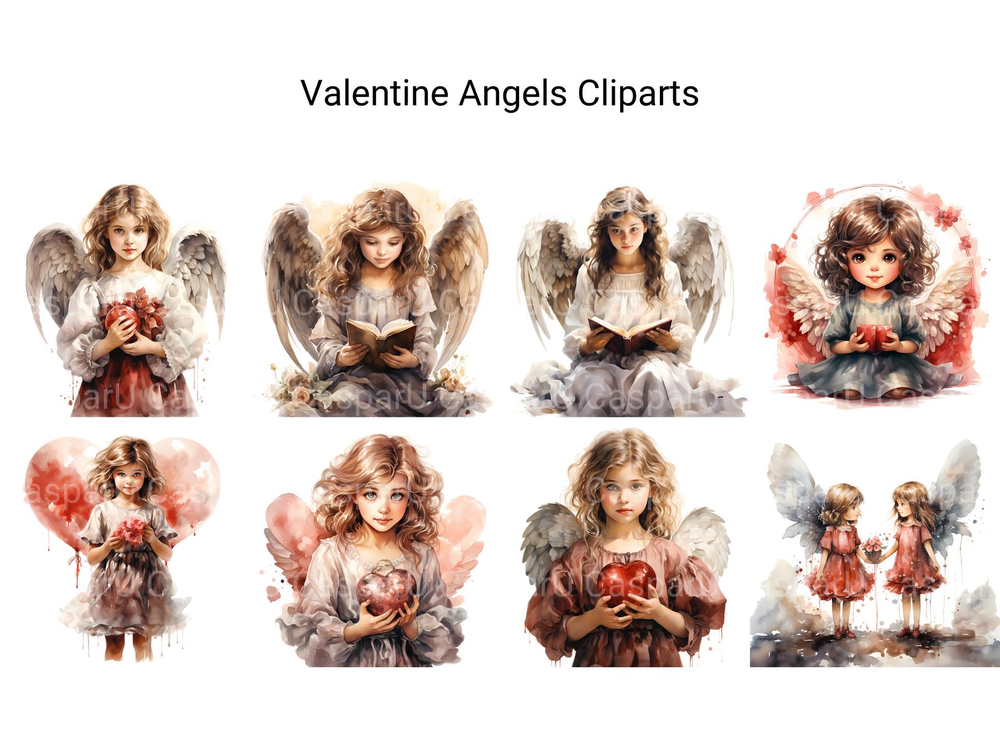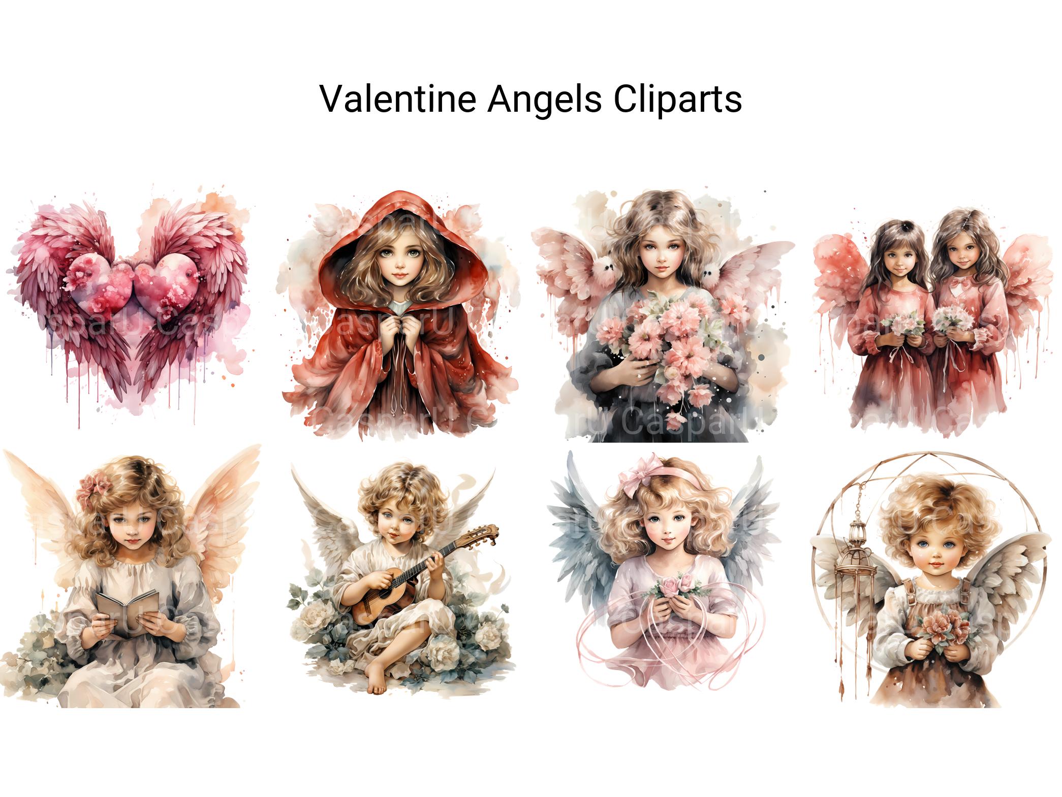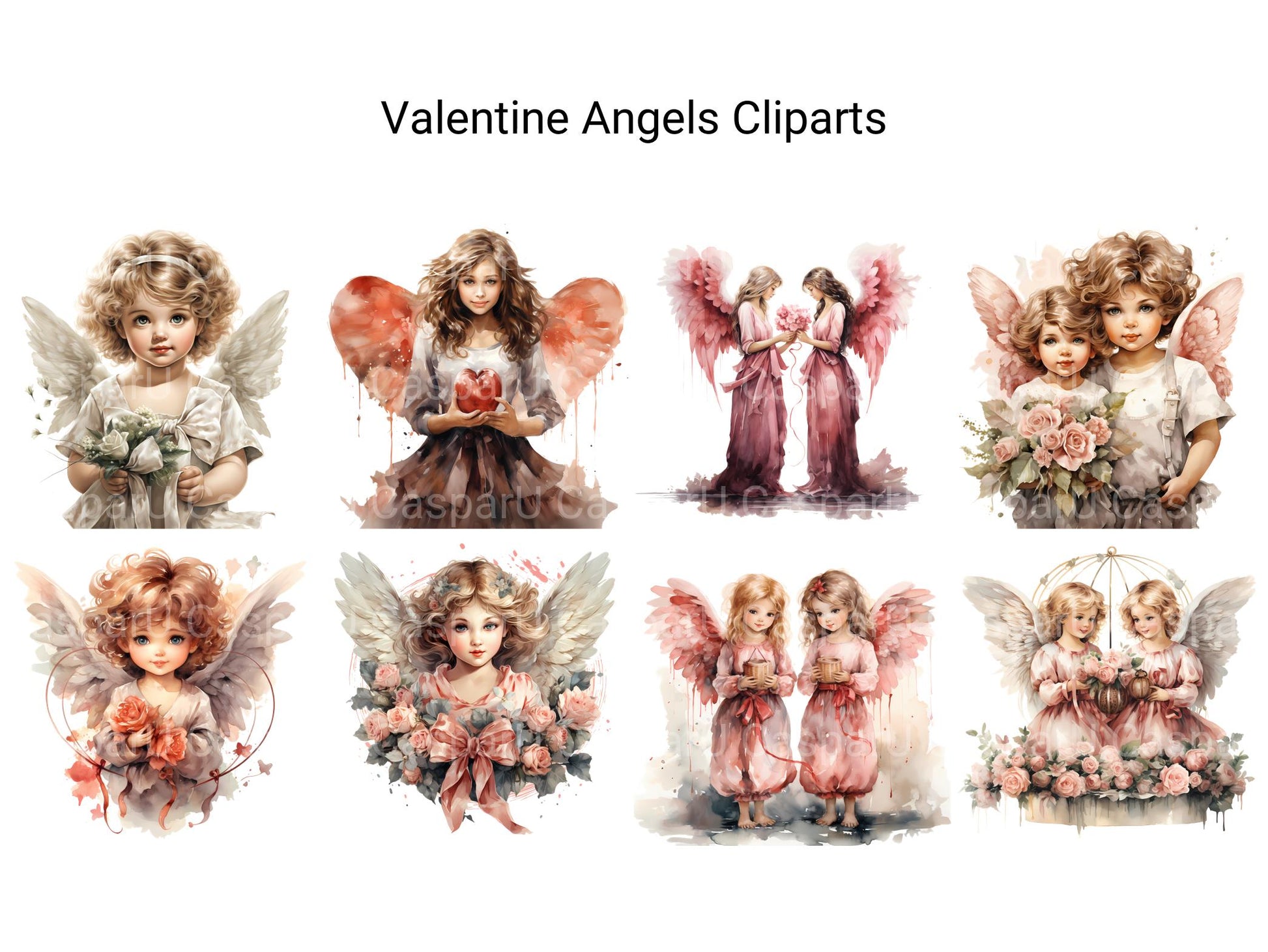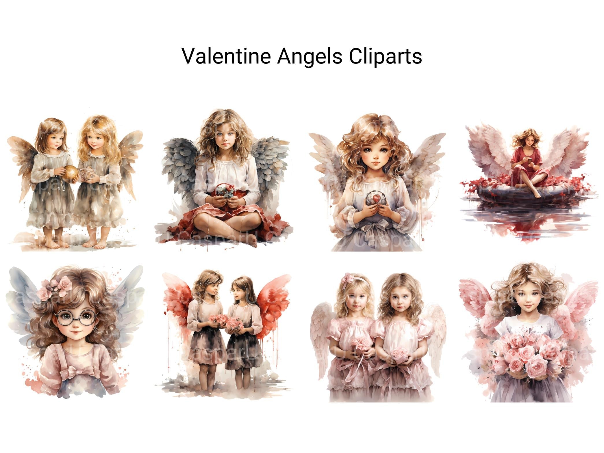 Embrace heavenly love with digital clip art featuring angelic Valentine's Day illustrations. With graceful wings and celestial beauty, these divine images exude serenity and grace, perfect for conveying messages of love and devotion. Let the ethereal presence of angels inspire your Valentine's Day projects, inviting viewers to believe in the power of love's divine guidance and protection.