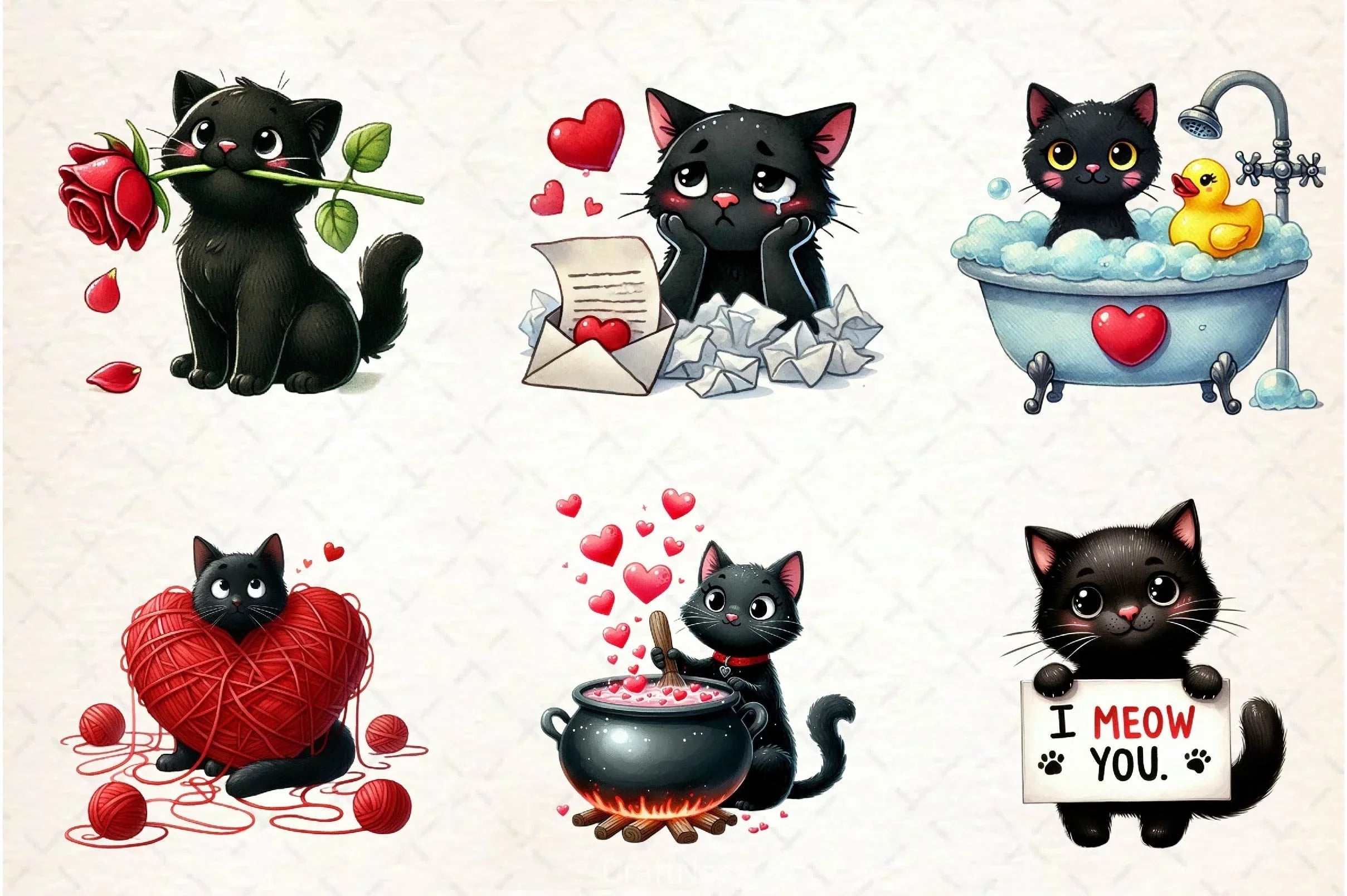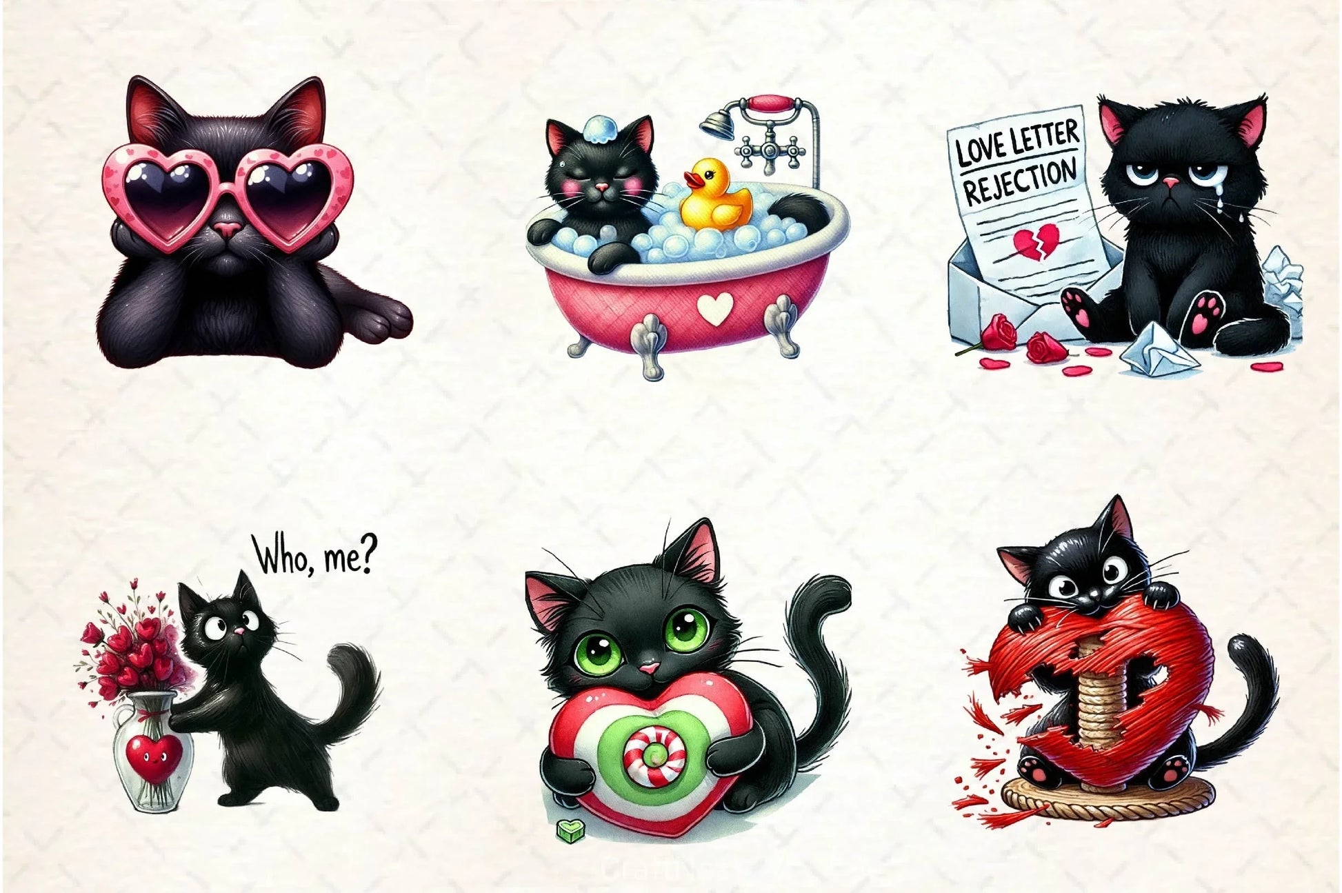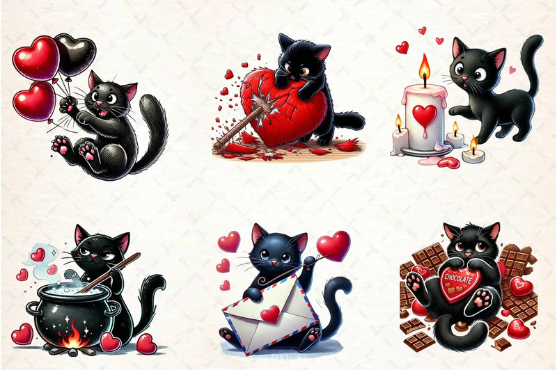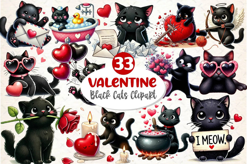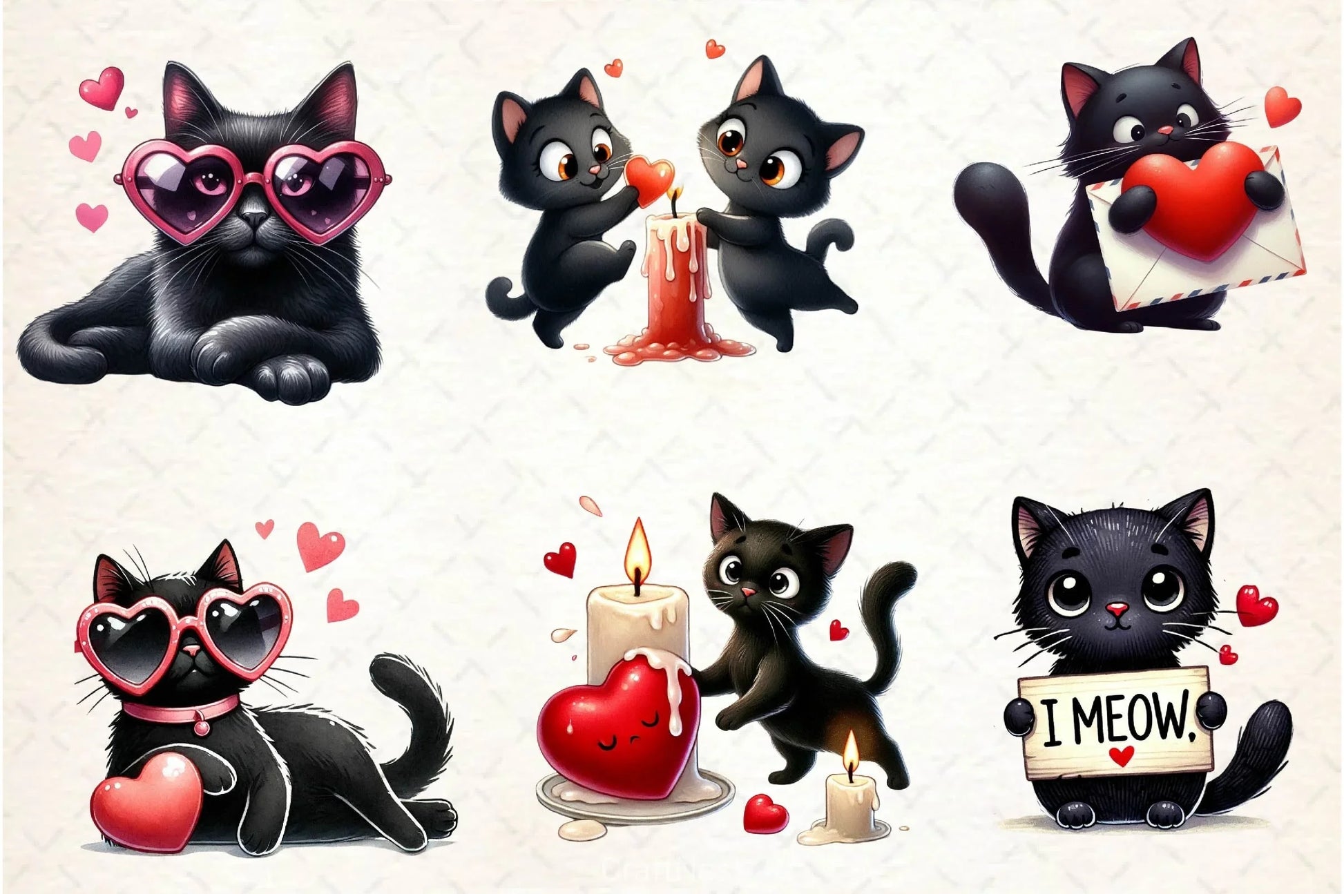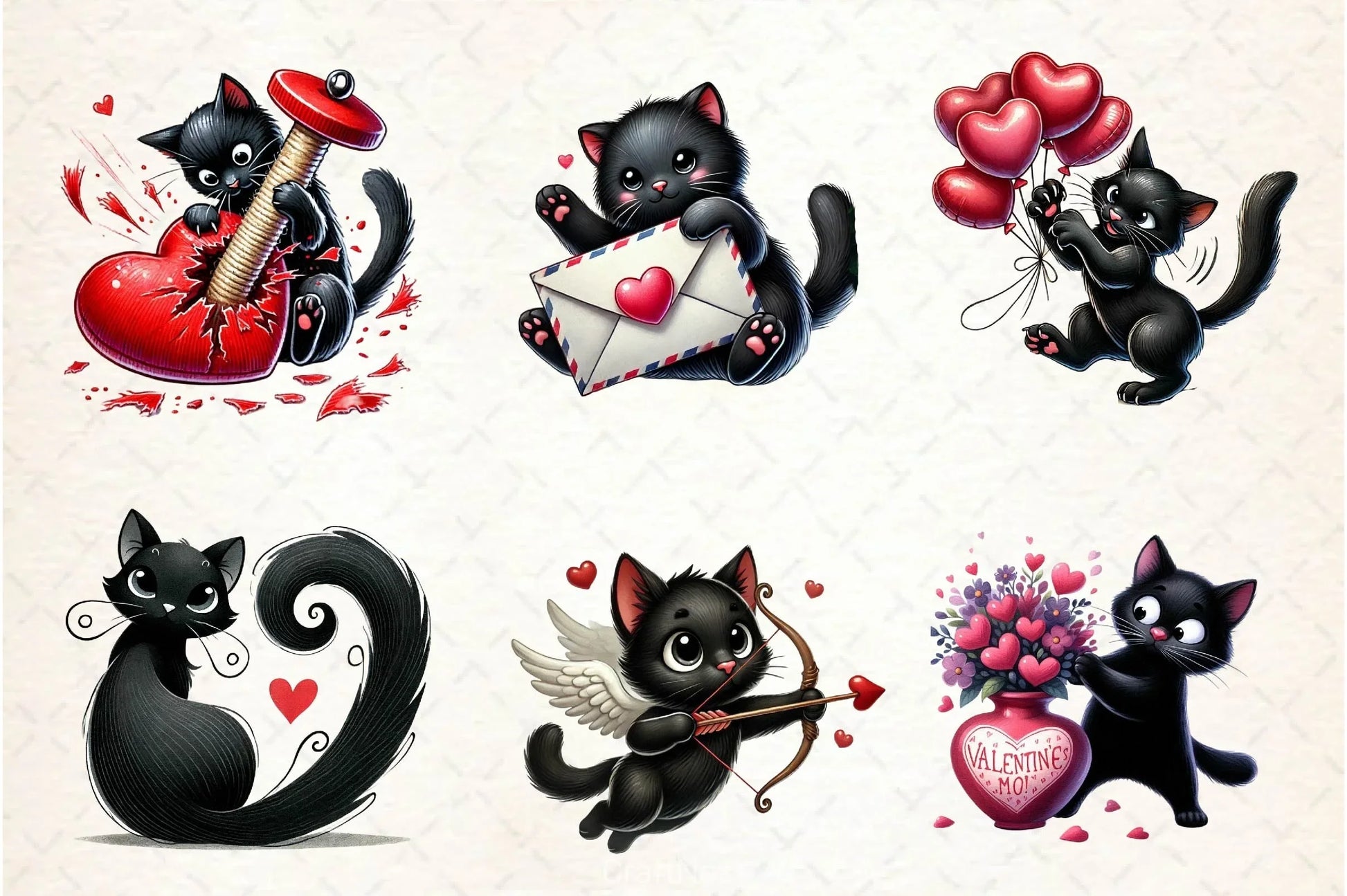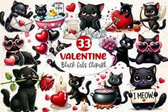 Enchant your Valentine's projects with the Valentine Black Cat Clipart Bundle, featuring charming black cat designs perfect for romantic crafts and unique gifts.