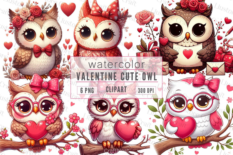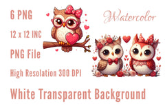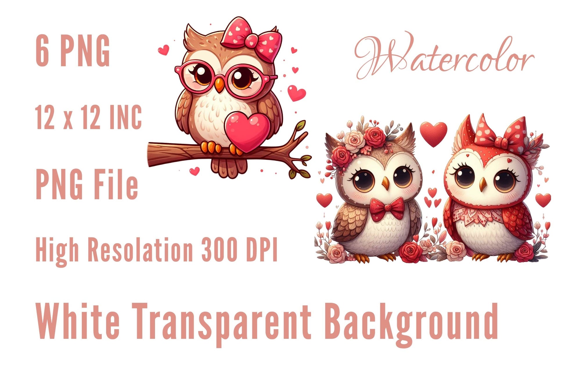Adorable owls celebrating Valentine's Day for romantic bird projects.