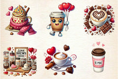 Brew with this Valentine Day Coffee Clipart Bundle, featuring romantic beverage designs, perfect for love drink crafts.