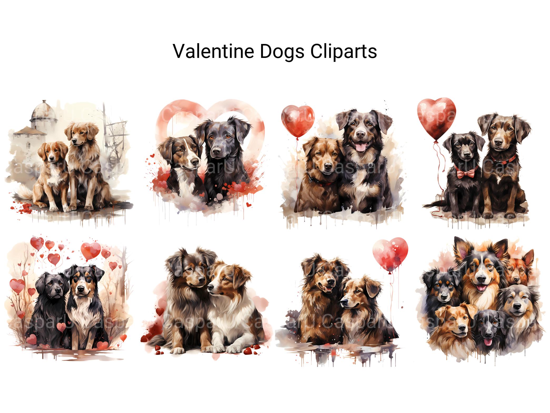 Fetch some love with digital clip art featuring heartwarming dog illustrations for Valentine's Day. From loyal companions to tail-wagging greetings, these adorable pups embody the boundless affection and loyalty of man's best friend. Let the wag of a dog's tail and the sparkle in their eyes melt your heart and brighten your celebrations, inviting viewers to celebrate the unconditional love and friendship shared between humans and their furry canine companions on Valentine's Day.