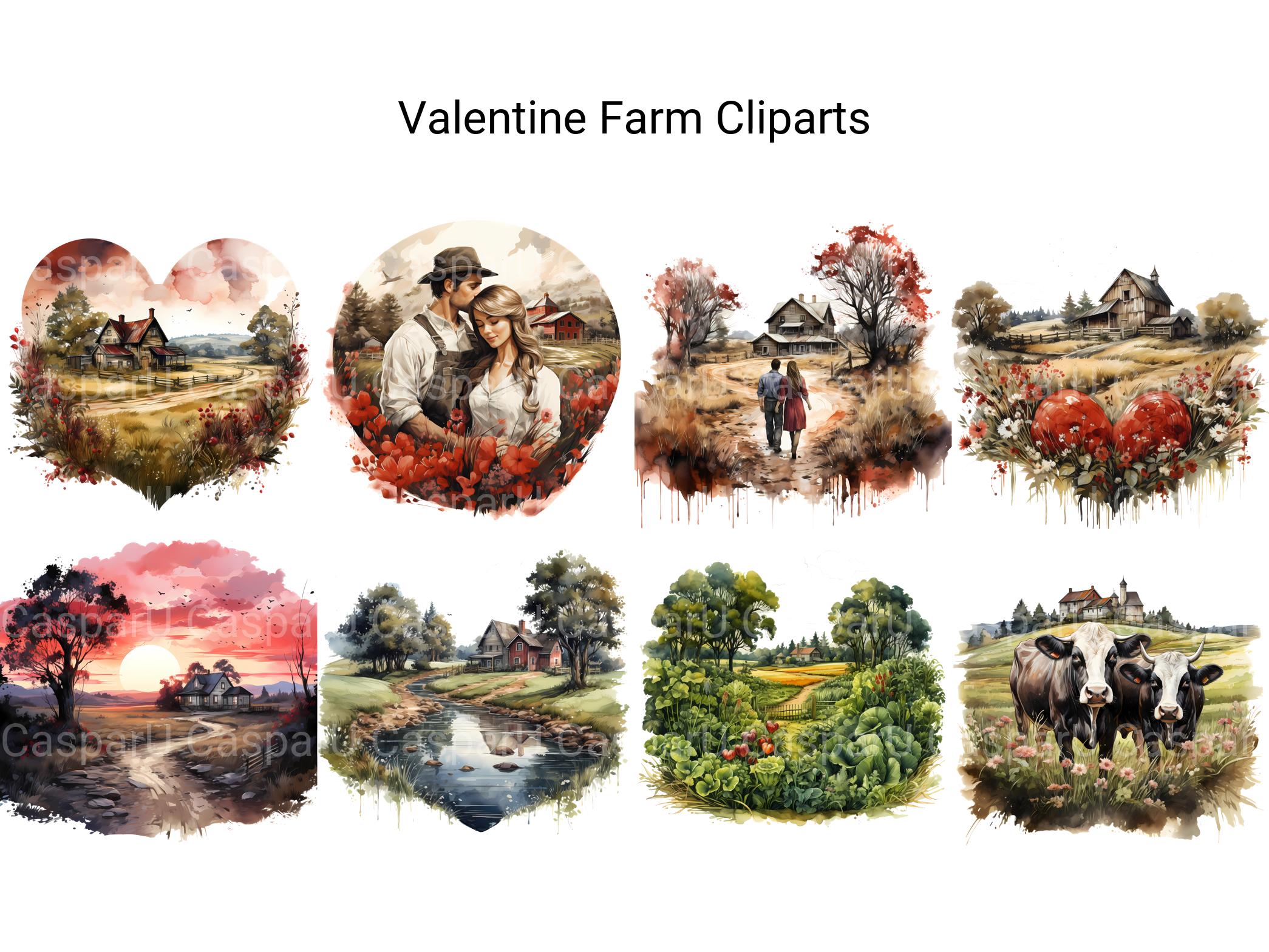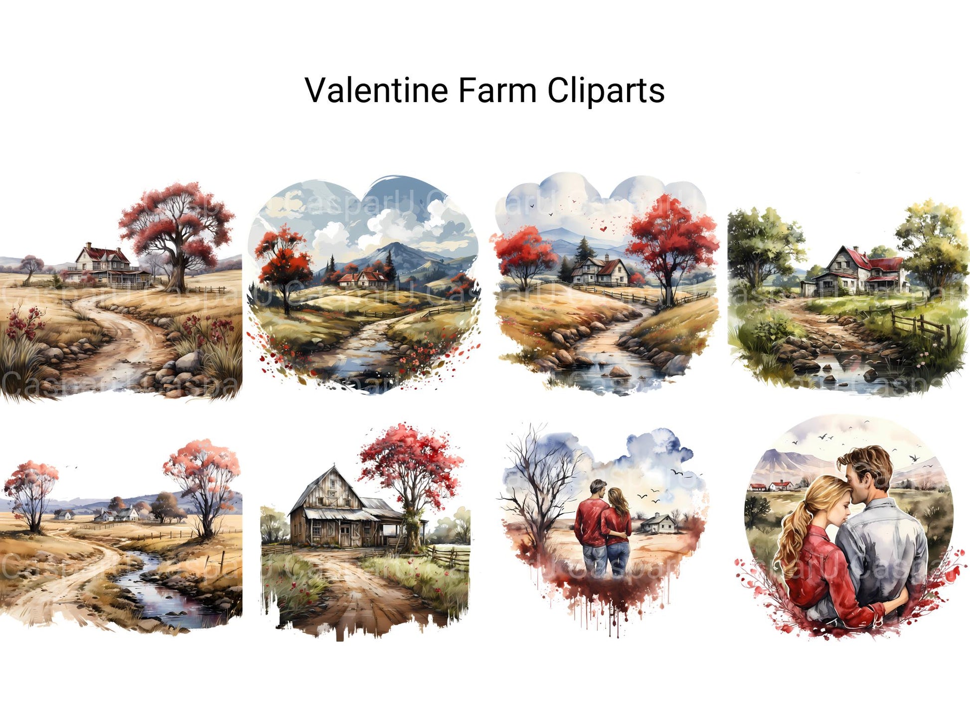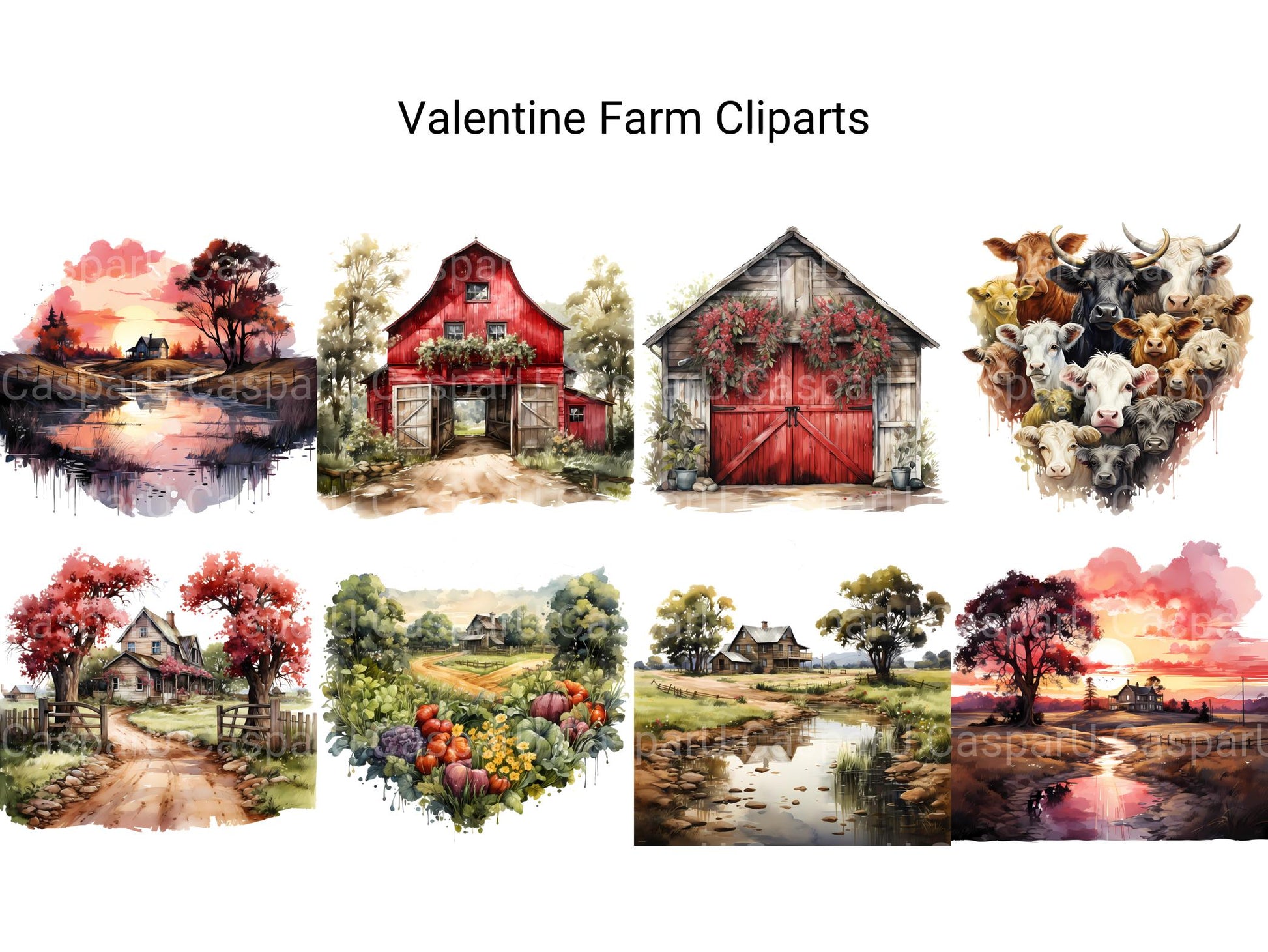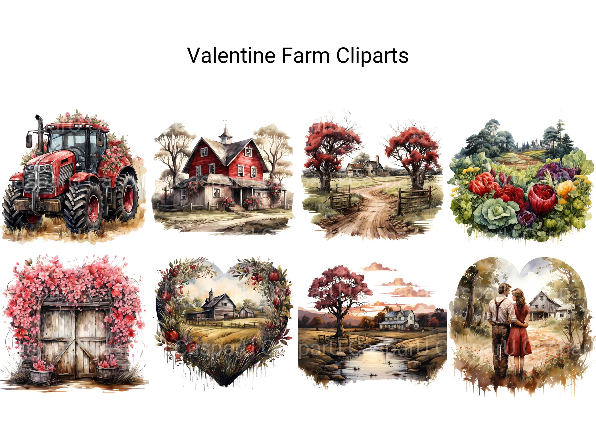 Celebrate love in the rustic charm of Valentine Farm with digital clip art featuring heartwarming farm-inspired illustrations. From cozy barns to blooming fields, these delightful images capture the romance of country living, perfect for adding a touch of rustic elegance to your Valentine's Day projects. Let the idyllic beauty of Valentine Farm evoke feelings of love and togetherness, inviting viewers to embrace the simple joys of life on the farm.