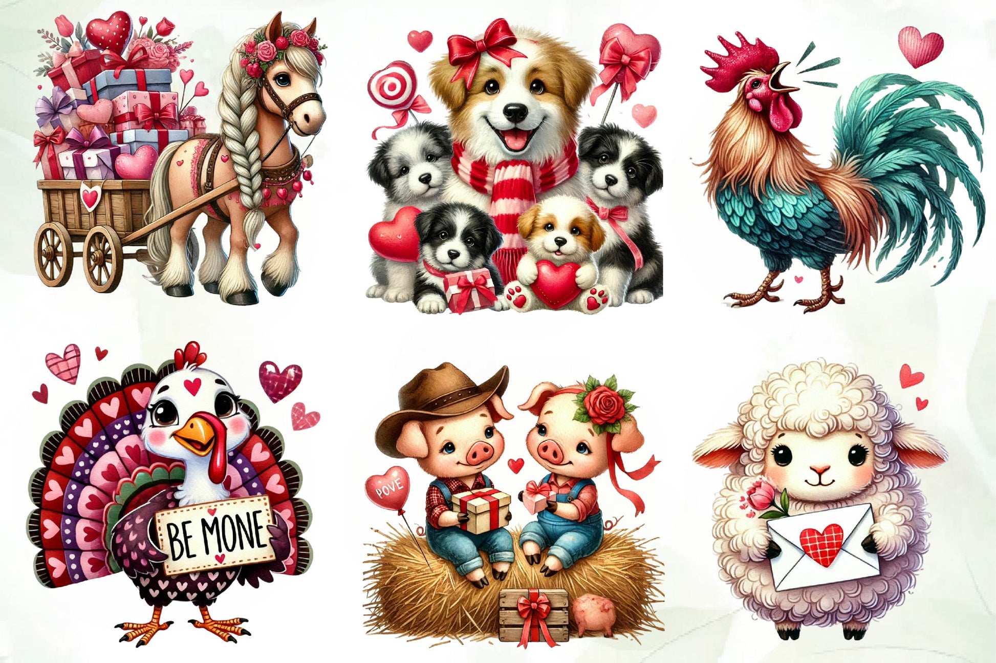 Love with this Valentine Farm Clipart Bundle, featuring romantic farm designs, ideal for Valentine's Day farming crafts.