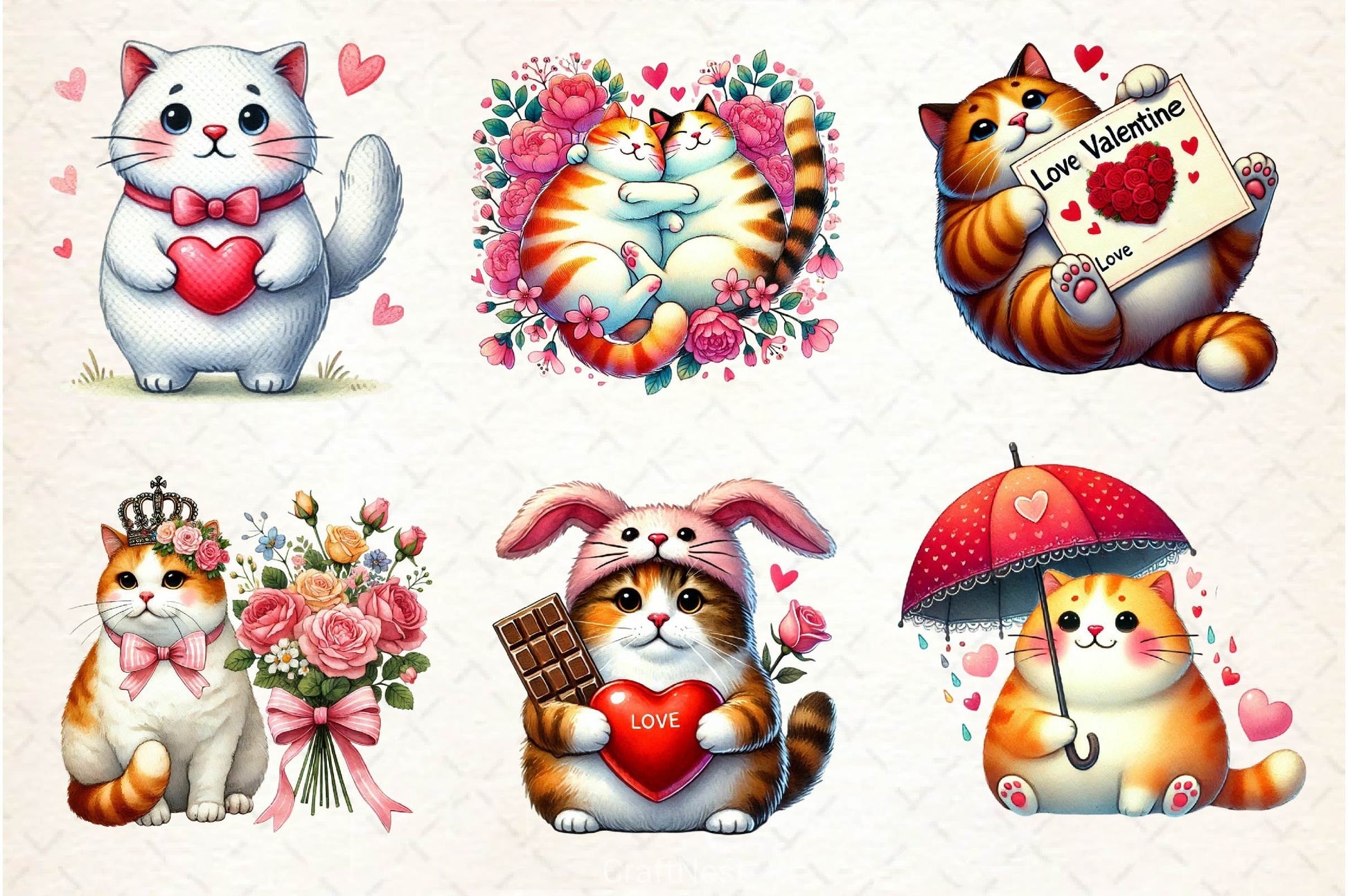 Chubby with this Valentine Fat Cat Clipart Bundle, featuring plump romantic feline designs, perfect for love pet crafts.