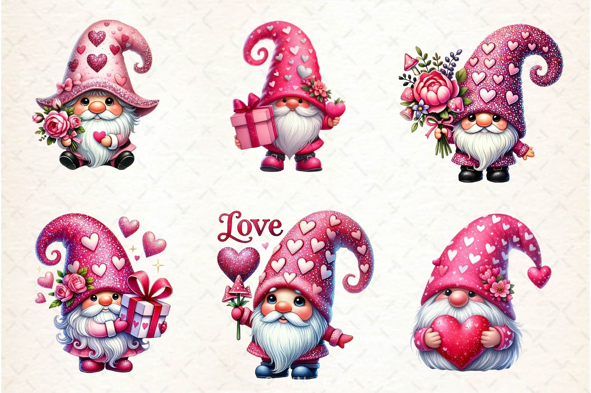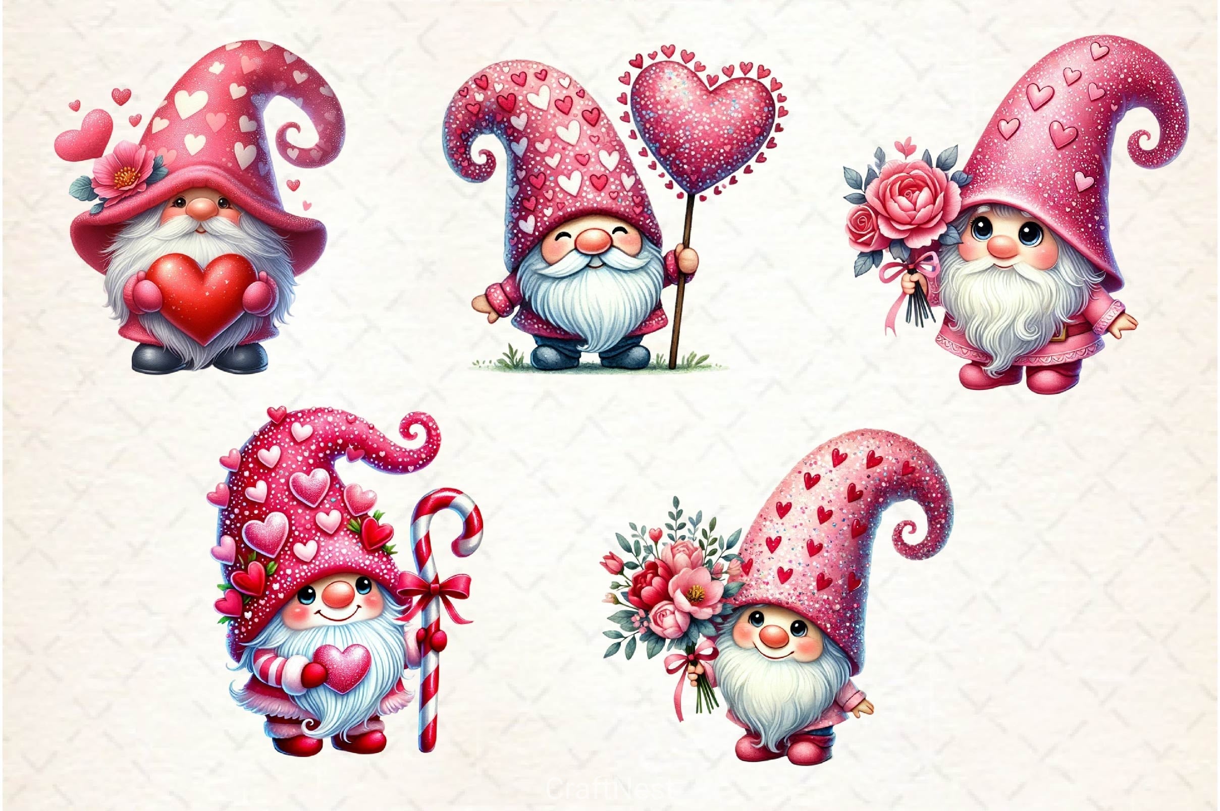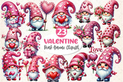 Love with this Valentine Gnome Clipart Bundle, featuring romantic garden creature designs, perfect for enchanted valentine crafts.