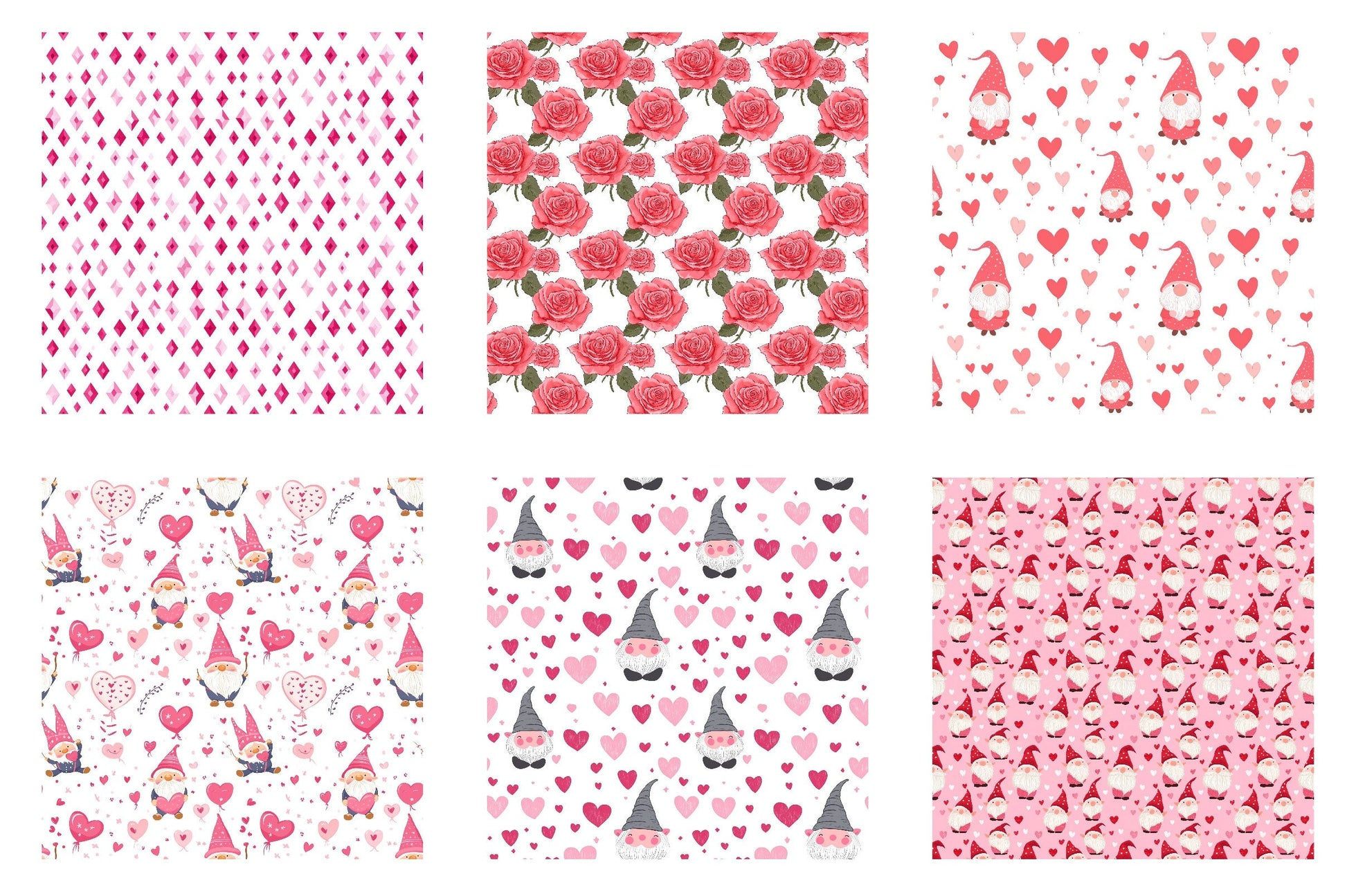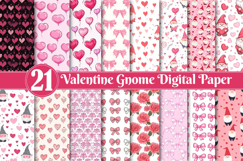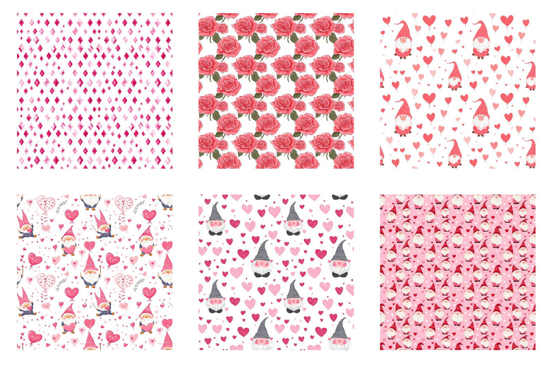 Cute Valentine gnome digital papers perfect for romantic and magical crafting projects.