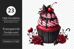 Dark with this Valentine Gothic Cupcake Clipart Bundle, featuring alternative romantic treat designs, perfect for gothic valentine crafts.