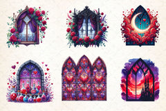 Dark gothic windows with Valentine themes for alternative romantic projects.