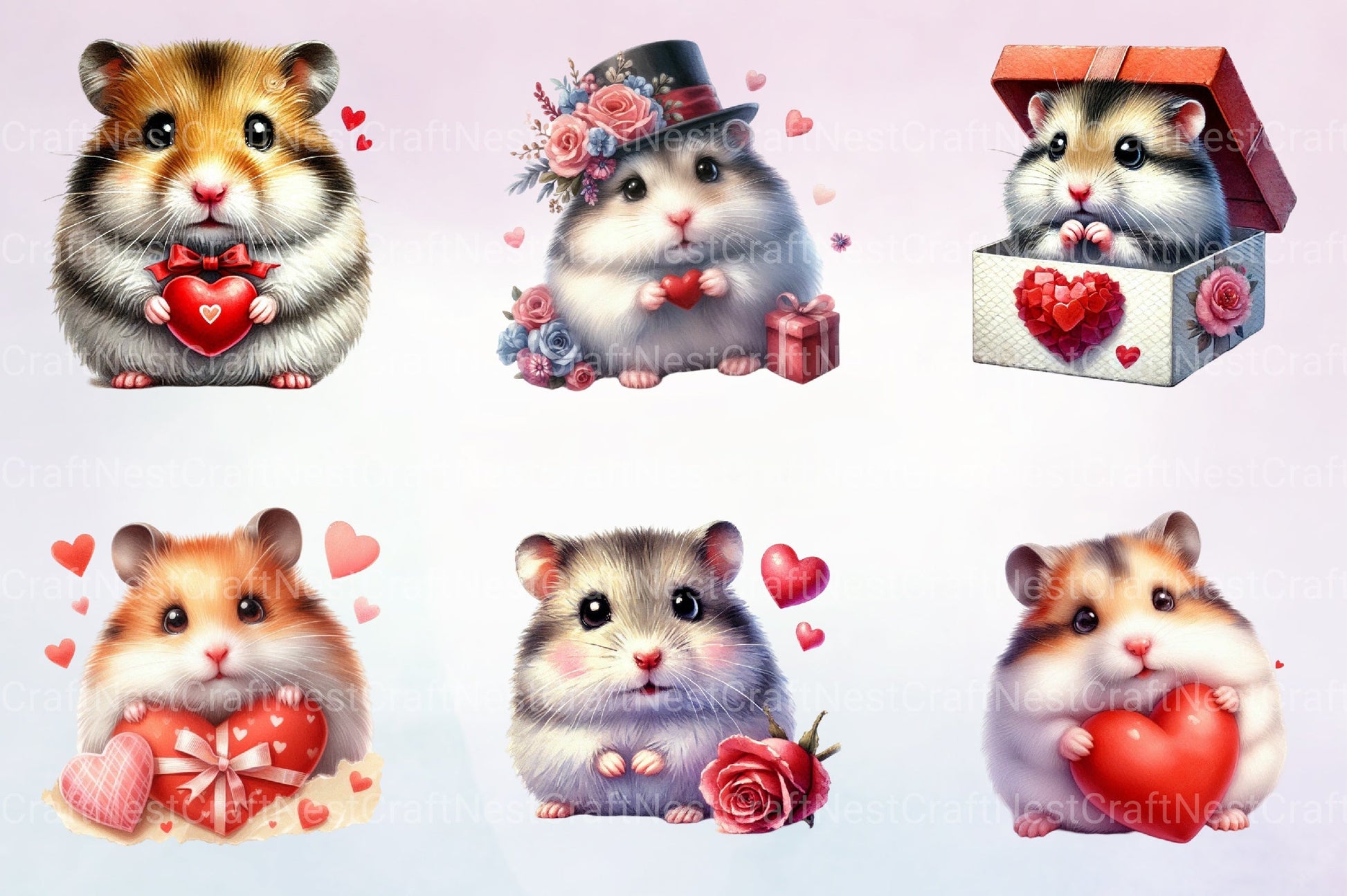 Valentine Hamster Clipart Bundle