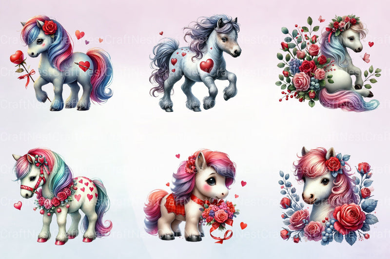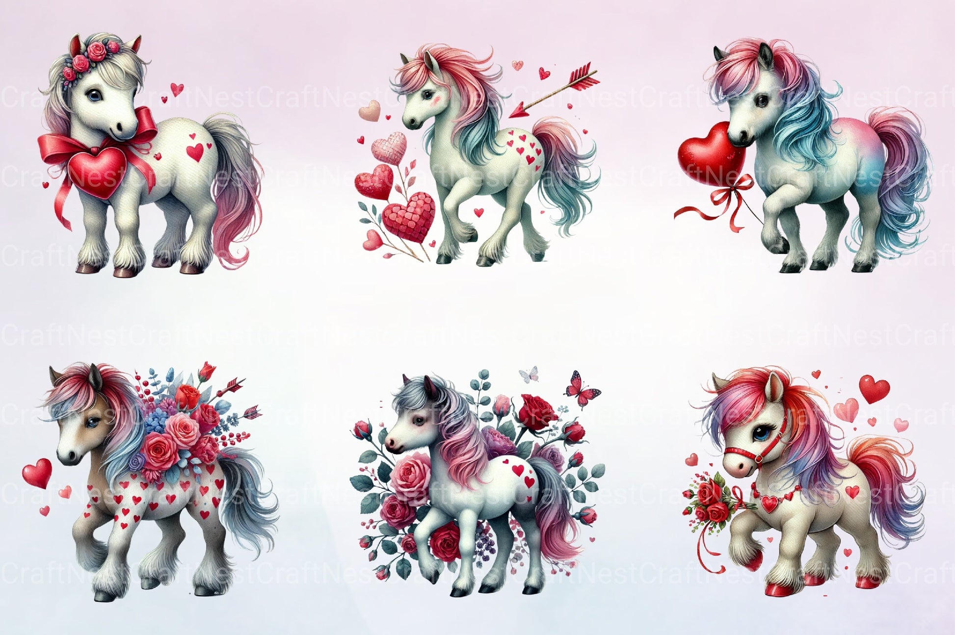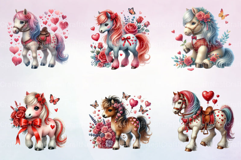 Gallop with this Valentine Horse Clipart Bundle, featuring romantic horse designs, perfect for equestrian Valentine's crafts.