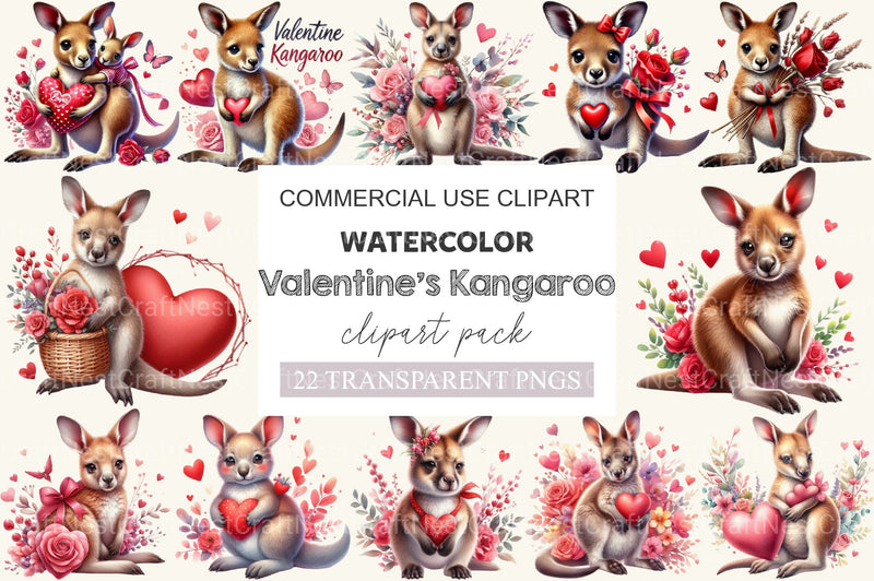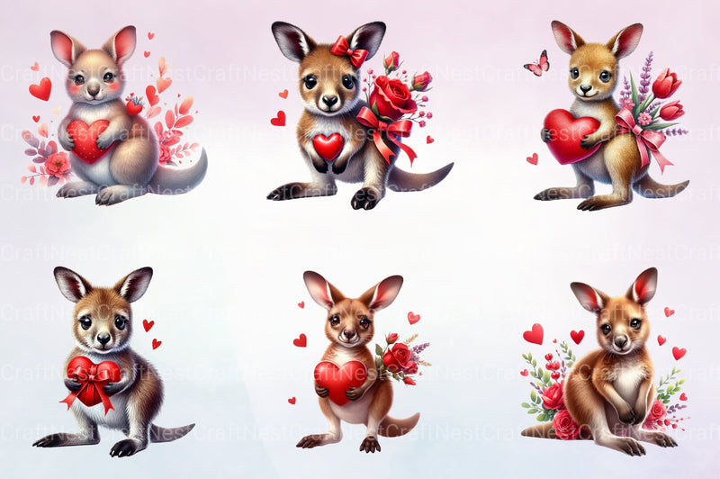 Hop with this Valentine Kangaroo Clipart Bundle, featuring bouncing love designs, ideal for Australian Valentine's crafts.