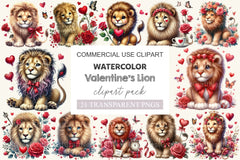 Roar with this Valentine Lion Clipart Bundle, featuring brave love designs, perfect for courageous Valentine's crafts.
