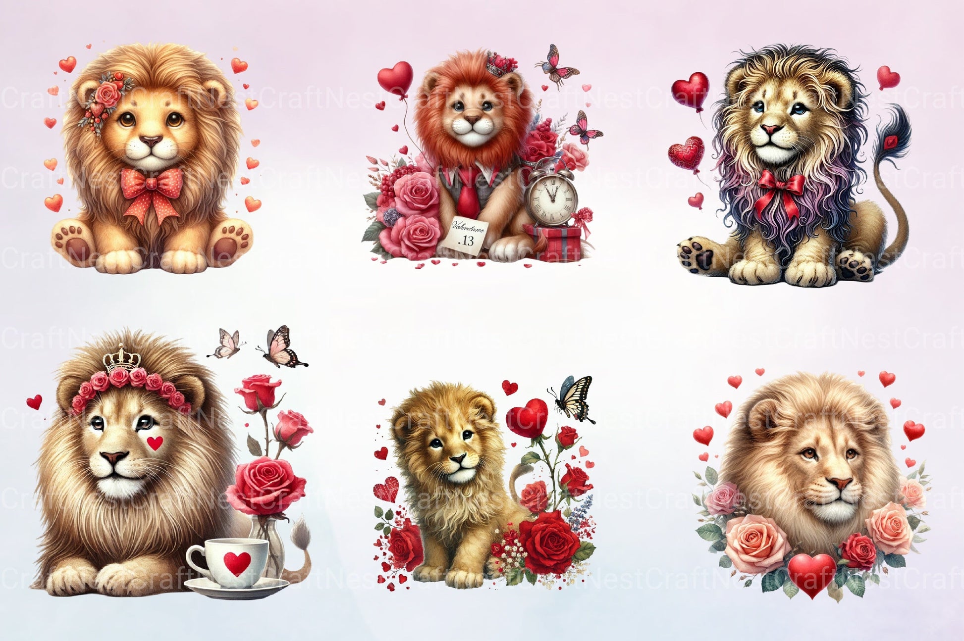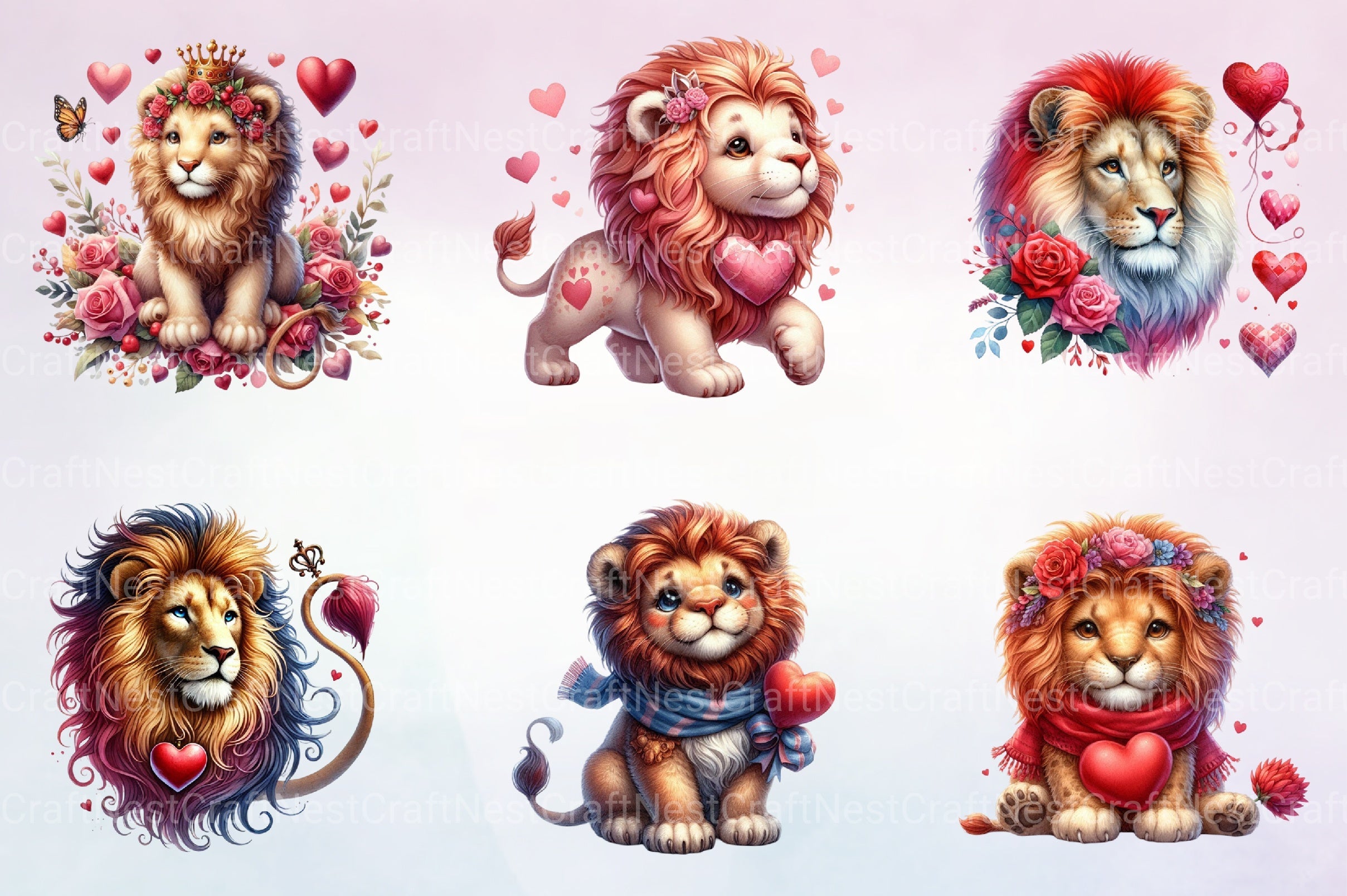 Valentine Lion Clipart Bundle