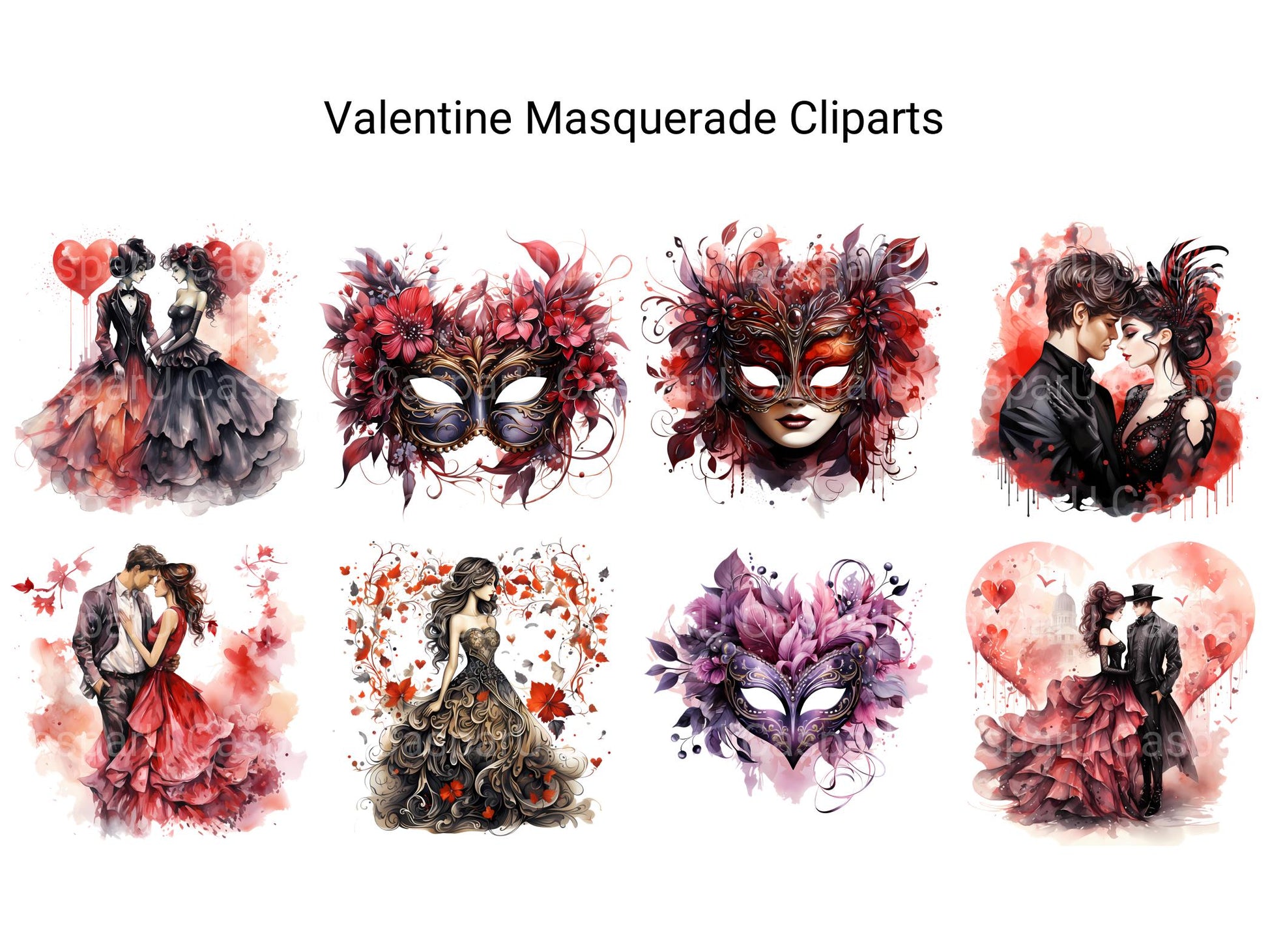 Step into a world of mystery and romance with digital clip art featuring enchanting masquerade illustrations for Valentine's Day. From elegant masks to elaborate costumes, these captivating images evoke the allure and intrigue of a masquerade ball, perfect for adding a touch of elegance to your celebrations. Let the mystique of Valentine Masquerade inspire your imagination, inviting viewers to embrace the magic and splendor of love's grand masquerade.