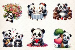 Adorable pandas celebrating Valentine's Day for romantic animal projects.
