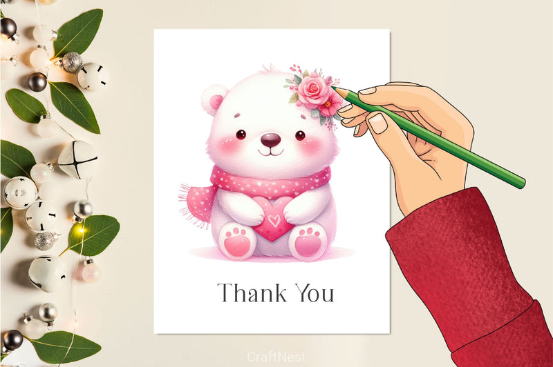 Adorable polar bears celebrating Valentine's Day for romantic animal projects.
