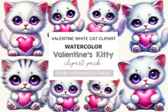 Purr with this Valentine White Cat Clipart Bundle, featuring elegant cat designs, perfect for sophisticated Valentine's crafts.