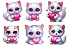 Valentine White Cat Clipart Bundle