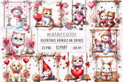 Play with this Valentines Animals On Swings Clipart Bundle, featuring romantic creature playground designs, perfect for love animal crafts.