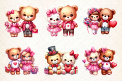 Cuddle with this Valentines Couple Teddy Bear Clipart Bundle, featuring romantic teddy pair designs, perfect for love toy crafts.