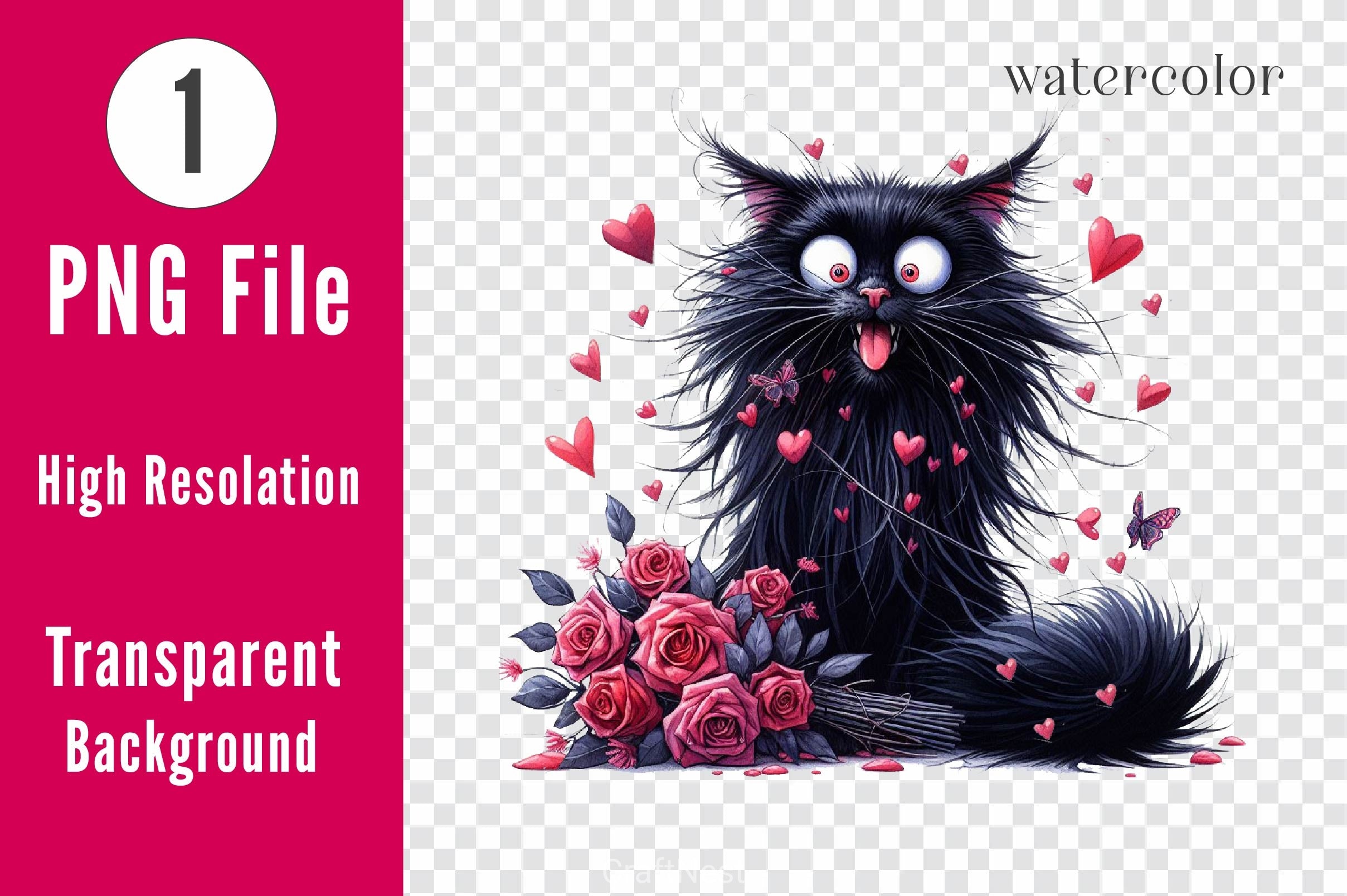 Wild black cats celebrating Valentine's Day for quirky romantic projects.