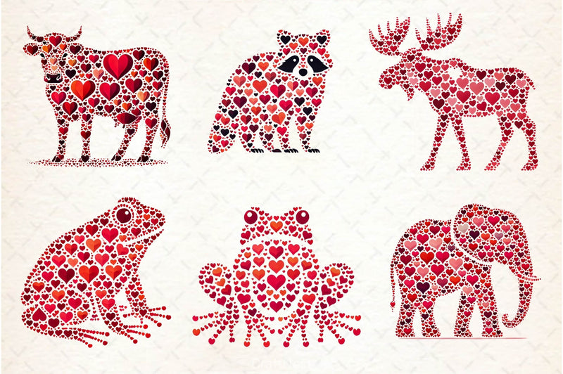 Love with this Valentines Day Animals Heart Clipart Bundle, featuring romantic pet designs, perfect for valentine animal crafts.