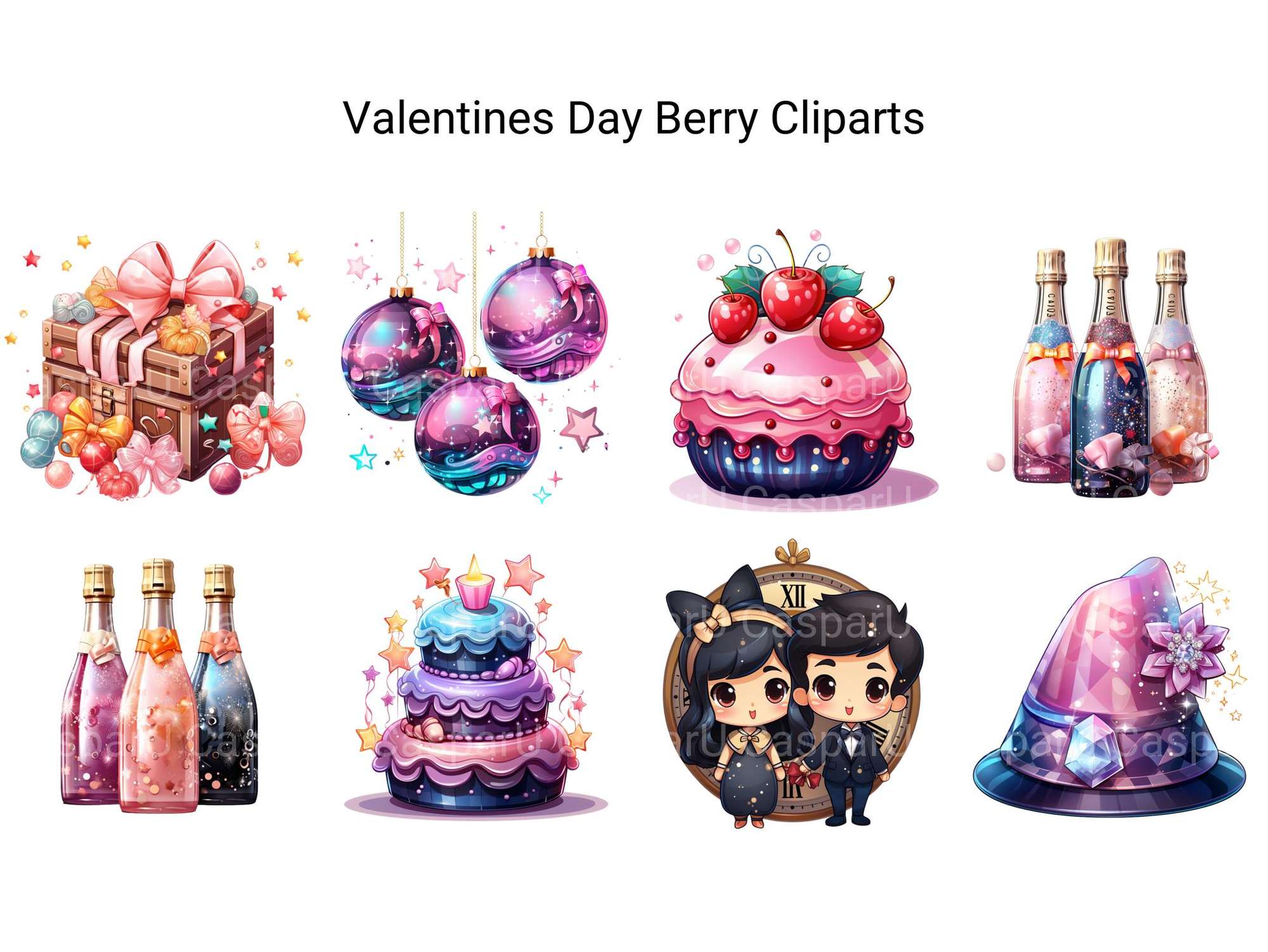 Sweeten your love with this Valentines Day Berry Themed Clipart set, featuring berry-inspired designs, ideal for romantic crafts.