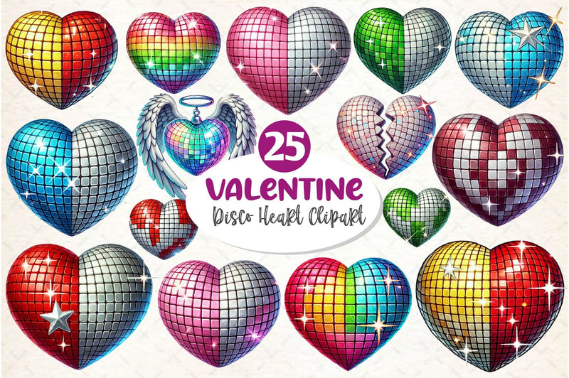 Dance with this Valentines Day Disco Heart Clipart Bundle, featuring groovy romantic designs, perfect for retro love crafts.