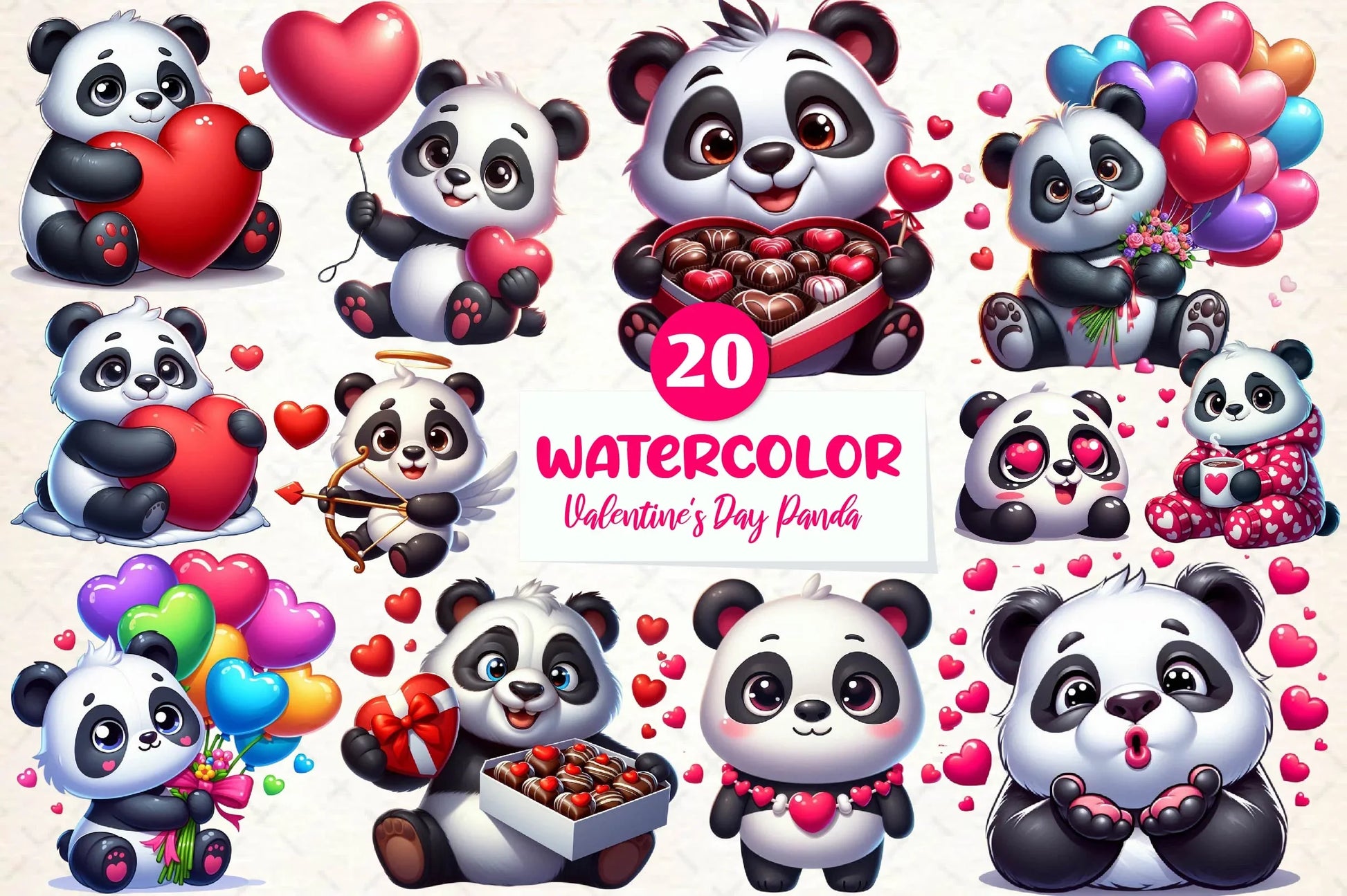 Celebrate love with our Valentine's Day Love Panda Clipart Bundle, featuring charming panda designs perfect for romantic crafts and heartfelt projects.
