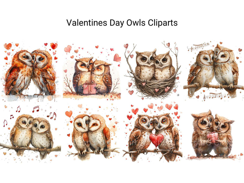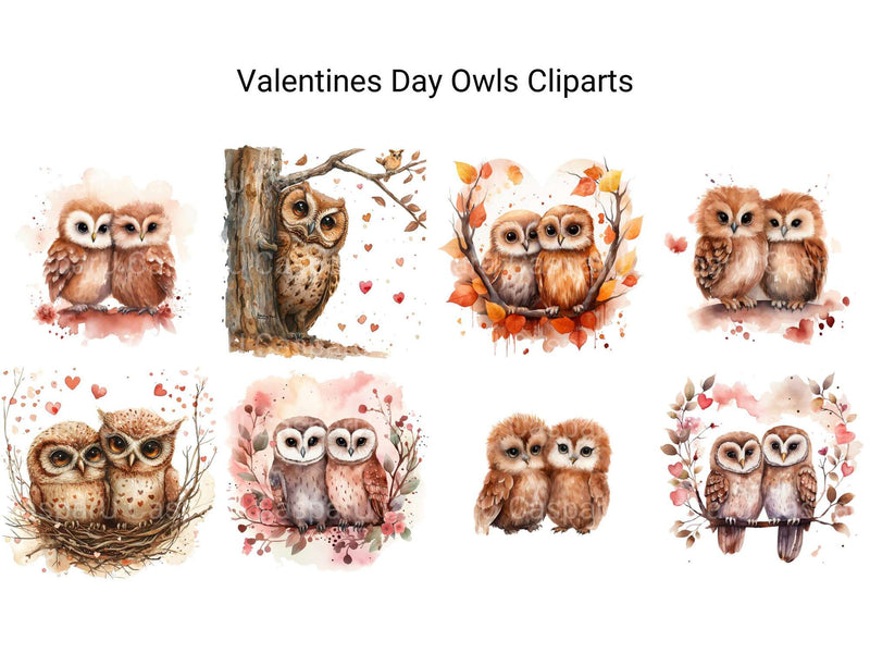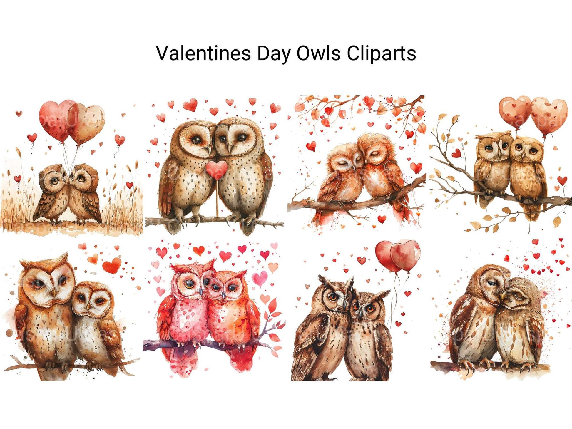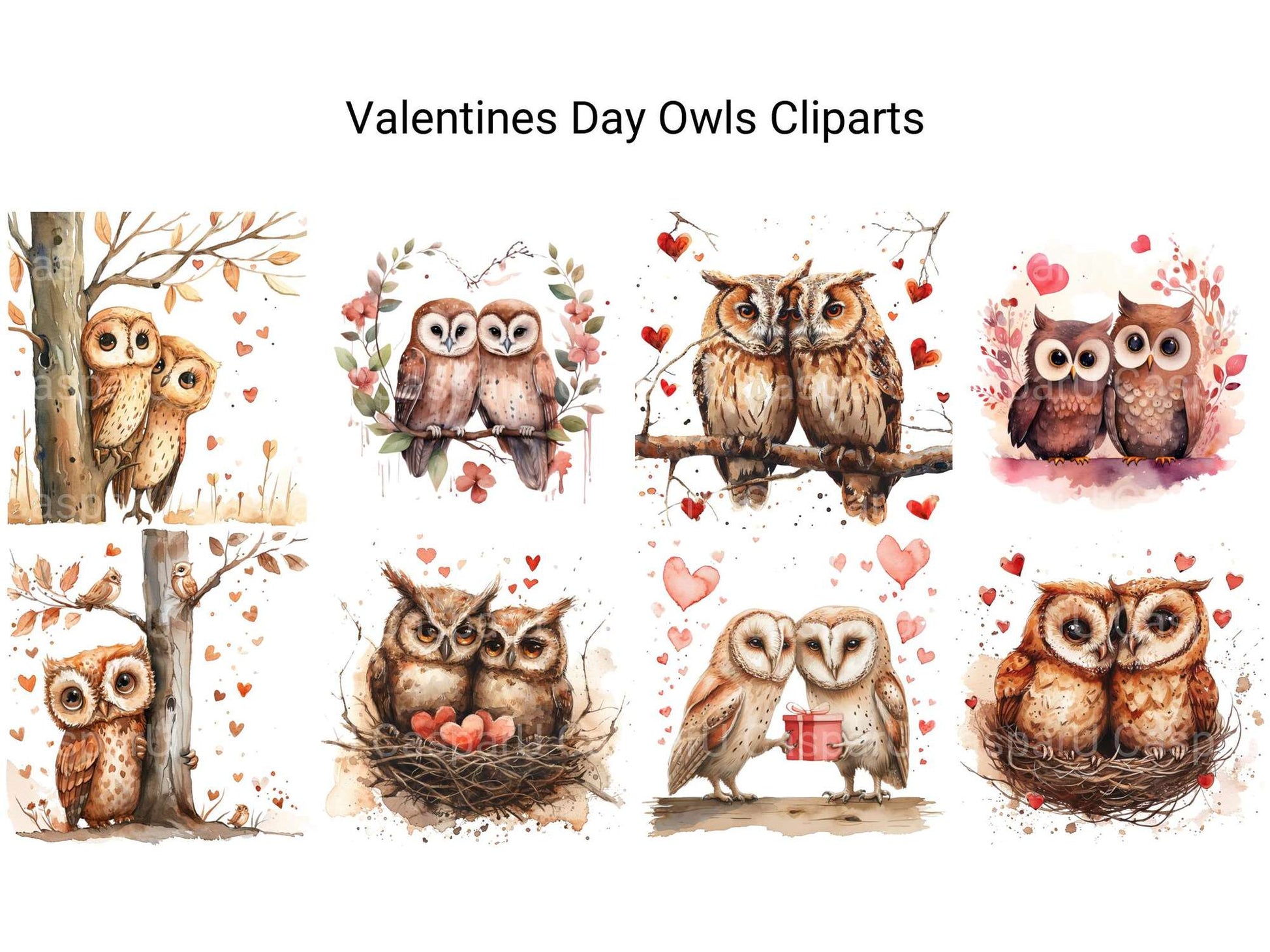 Hoot with love using this Valentines Day Owls Clipart set, featuring adorable owl designs, ideal for cute romantic crafts.