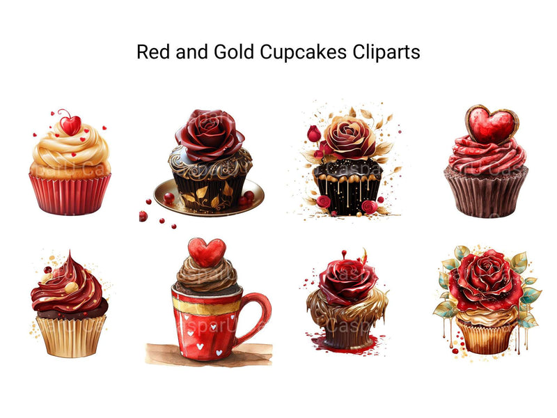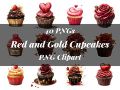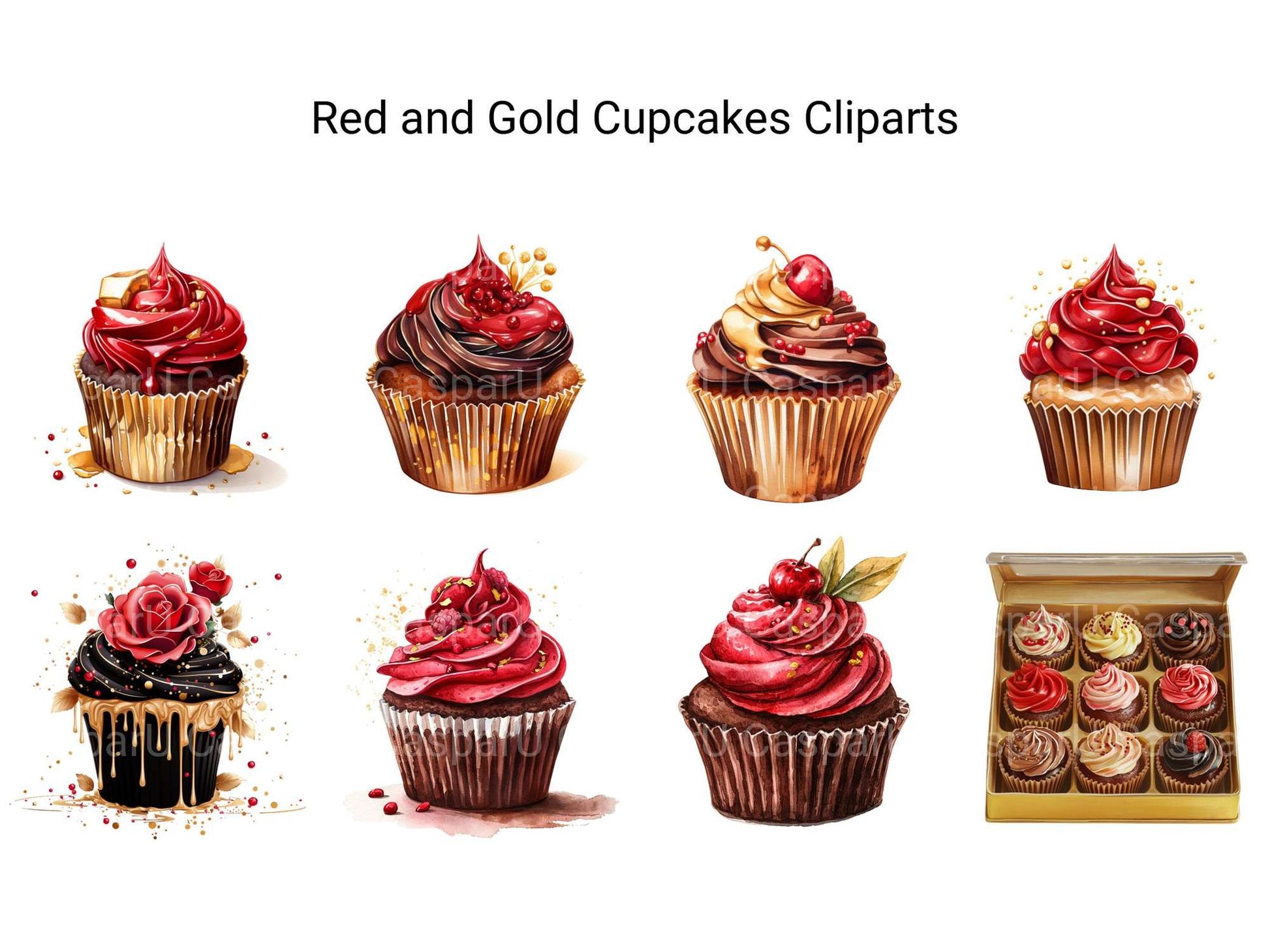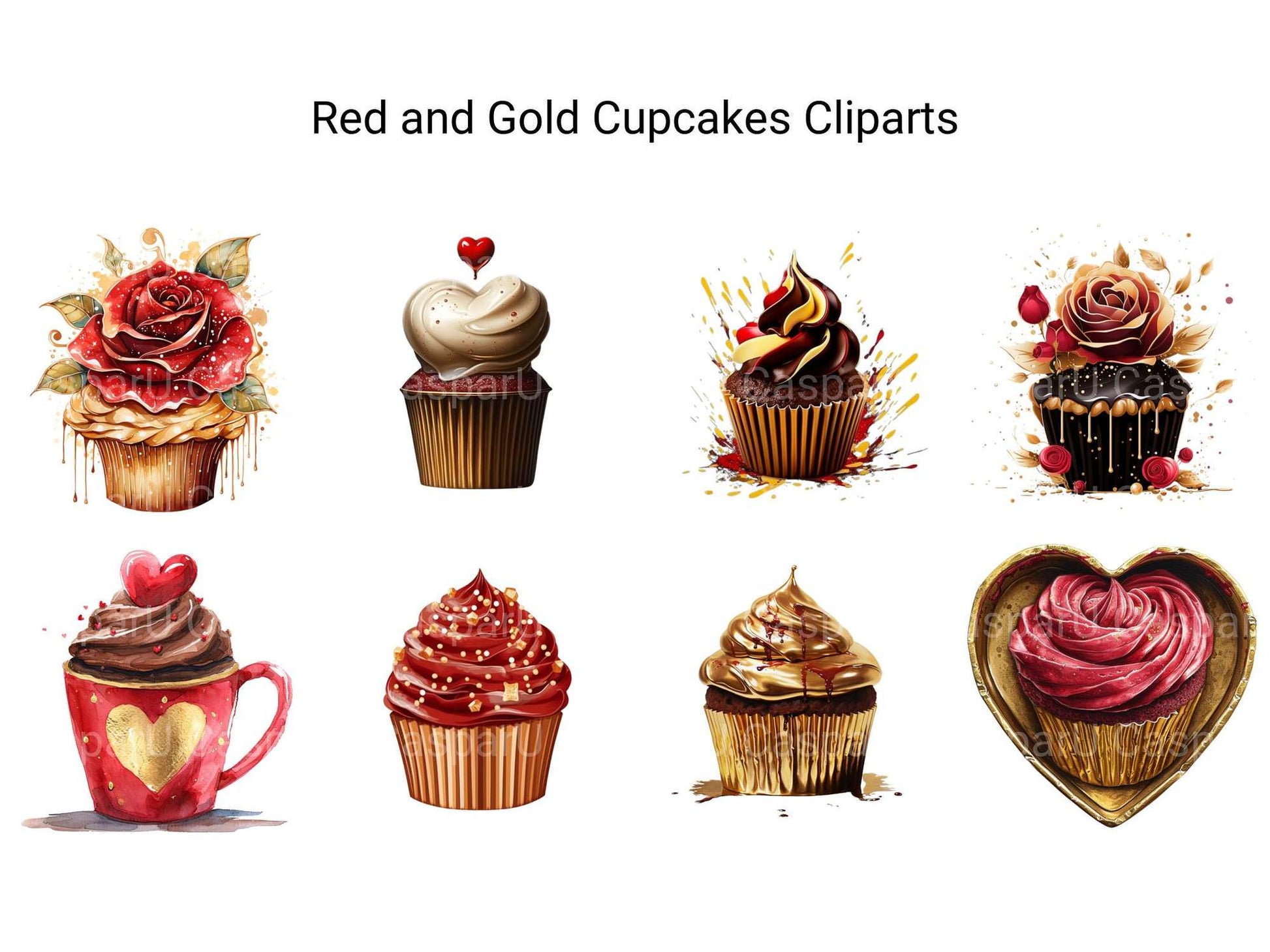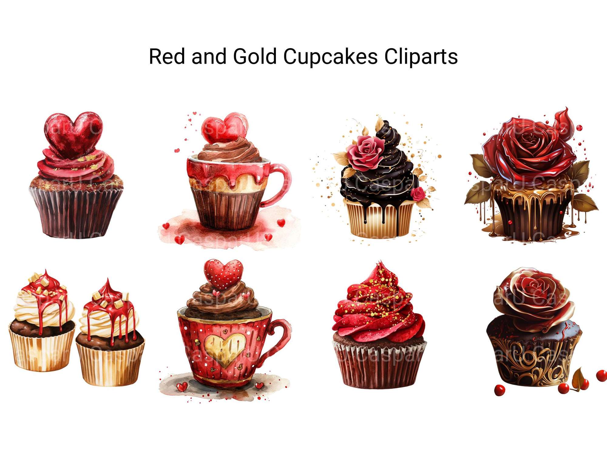 Sweeten your Valentine’s with this Red and Gold Cupcakes Clipart set, featuring luxurious cupcake designs, perfect for romantic baking projects.