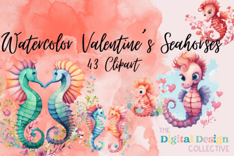 Celebrate love with our Valentine's Day Seahorse Art Clipart Bundle, featuring charming seahorse designs perfect for romantic crafts and heartfelt projects.