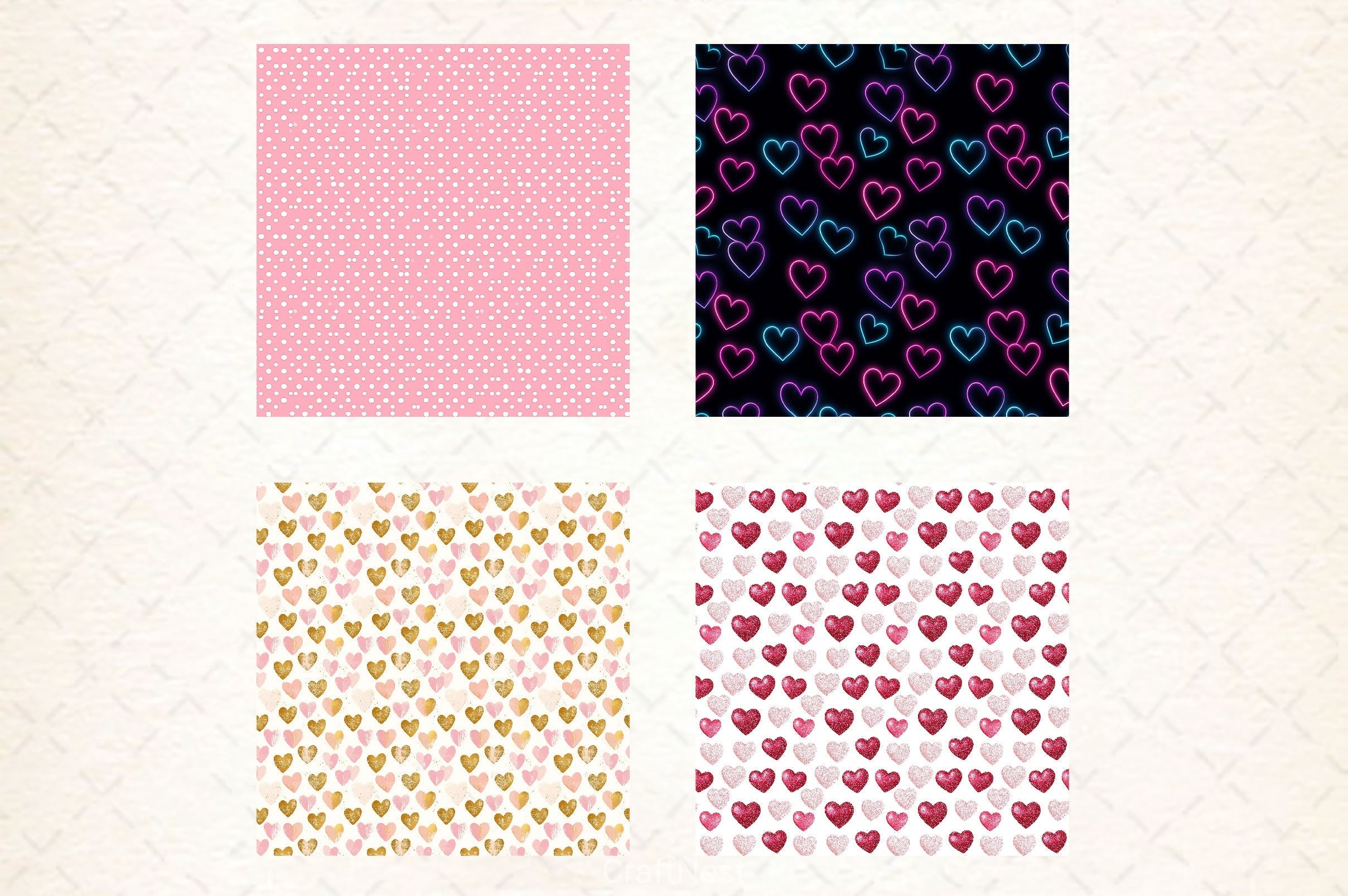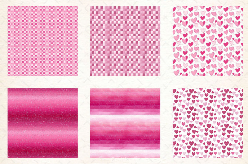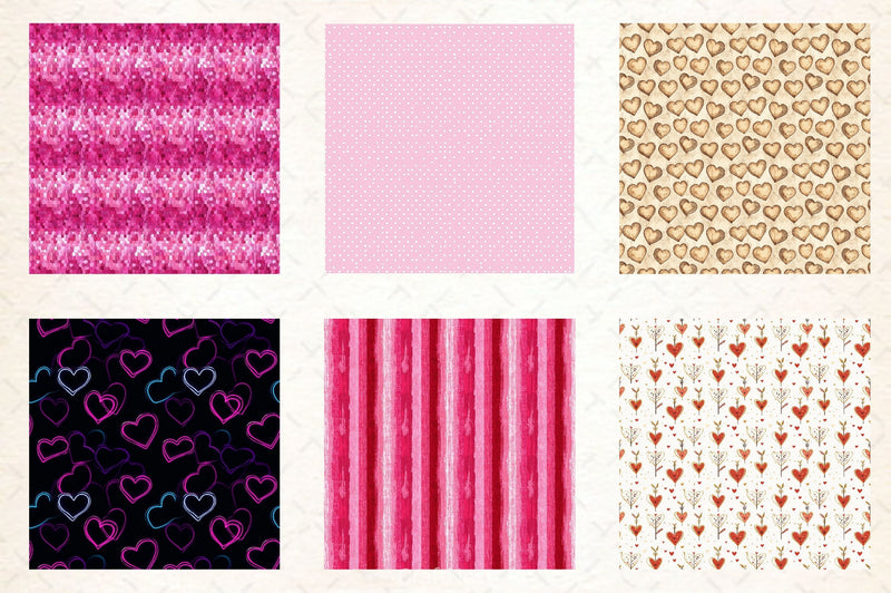 Romantic Valentine's Day seamless patterns perfect for love themed crafting and gifts.