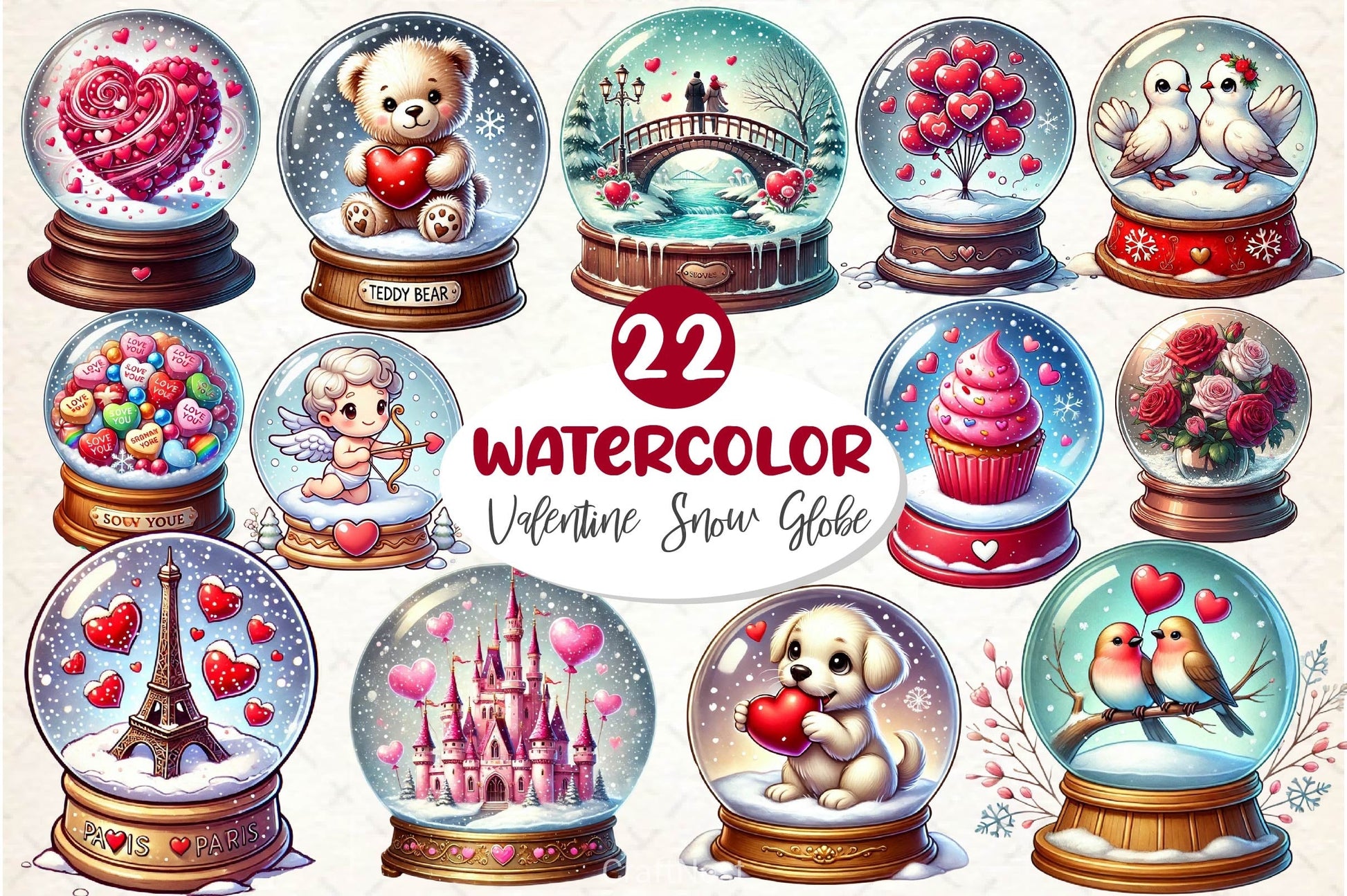 Shake with this Valentines Day Snow Globe Clipart Bundle, featuring romantic keepsake designs, perfect for love memory crafts.