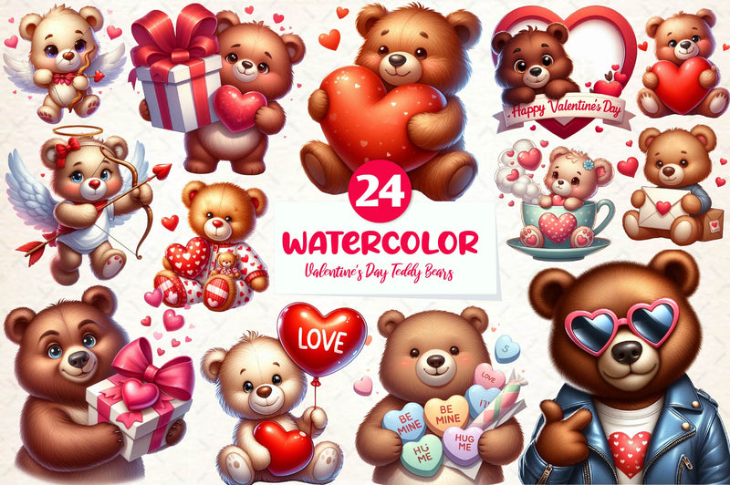 Hug with this Valentine's Day Teddy Bears Clipart Bundle, featuring romantic teddy designs, perfect for loving Valentine's crafts.