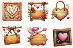 Sign with this Valentines Empty Wooden Signs Clipart Bundle, featuring Valentine sign designs, perfect for romantic decoration crafts.