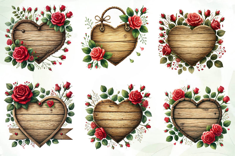 Display with this Valentines Empty Wooden Signs Clipart Bundle, featuring blank signage designs, ideal for customizable Valentine's crafts.
