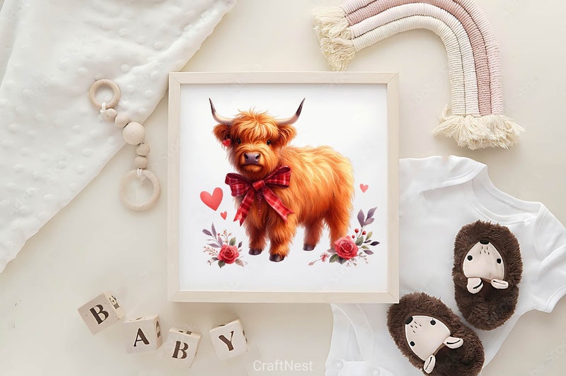 Highland cows celebrating Valentine's Day for romantic farm projects.