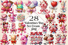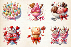 Valentines Ice Cream With Bows Clipart Bundle 2