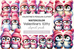 Chill with this Valentine's Penguin Clipart Bundle, featuring cool love designs, ideal for arctic Valentine's crafts.