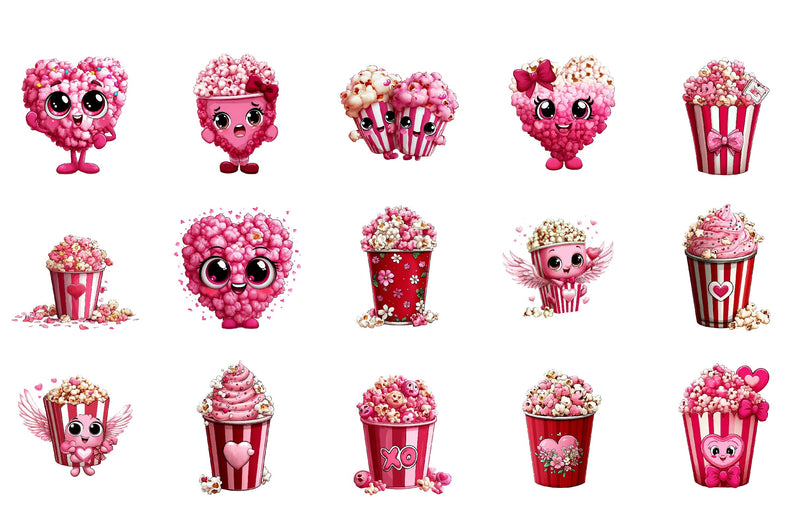 Delight in the Valentine's Popcorn Clipart Bundle, a charming collection perfect for crafting romantic projects. Featuring whimsical popcorn designs, this bundle is ideal for creating heartfelt cards, festive party invitations, and unique gift tags. Elevate your Valentine's Day crafts with these high-quality, versatile clipart images, designed to add a touch of love and fun to any project. Perfect for digital scrapbooking, DIY decorations, and more, this bundle is a must-have for creative enthusiasts looking to spread love and joy.
