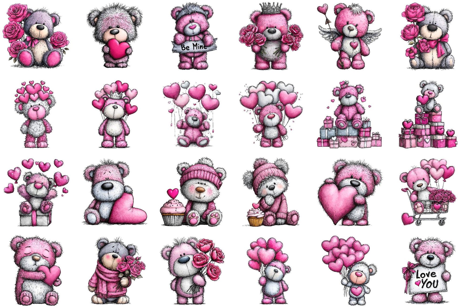 Delight in the Valentine's Teddy Bear Coquette Clipart Bundle, featuring charming teddy bear designs perfect for heartfelt crafts and romantic projects. Ideal for creating personalized gifts, cards, and decorations, this bundle adds a touch of love to any creation. Unleash your creativity with these adorable illustrations, perfect for Valentine's Day and beyond.
