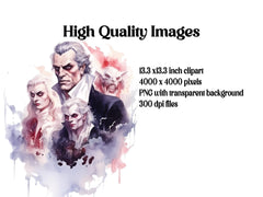Explore the allure of the night with our Vampire clip art. These captivating digital illustrations feature elegant vampires, mysterious castles, and swirling capes, perfect for adding a touch of Gothic elegance and dark romance to your designs, whether for Halloween artwork, fantasy-themed events, or vampire-inspired creations, immersing viewers in the captivating world of immortal vampires in haunting detail.