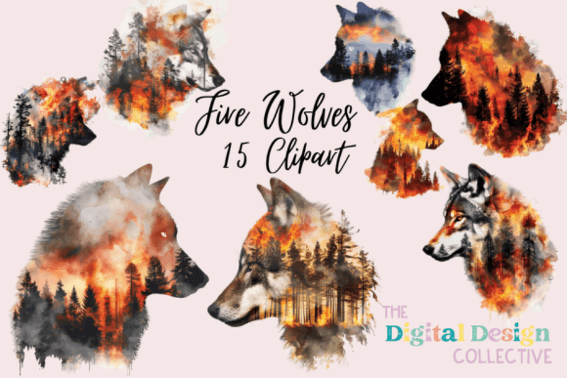 Unleash creativity with the Fire Wolves Clipart Collection Bundle, featuring fierce and captivating wolf designs, perfect for dynamic digital projects and wild-themed crafts.