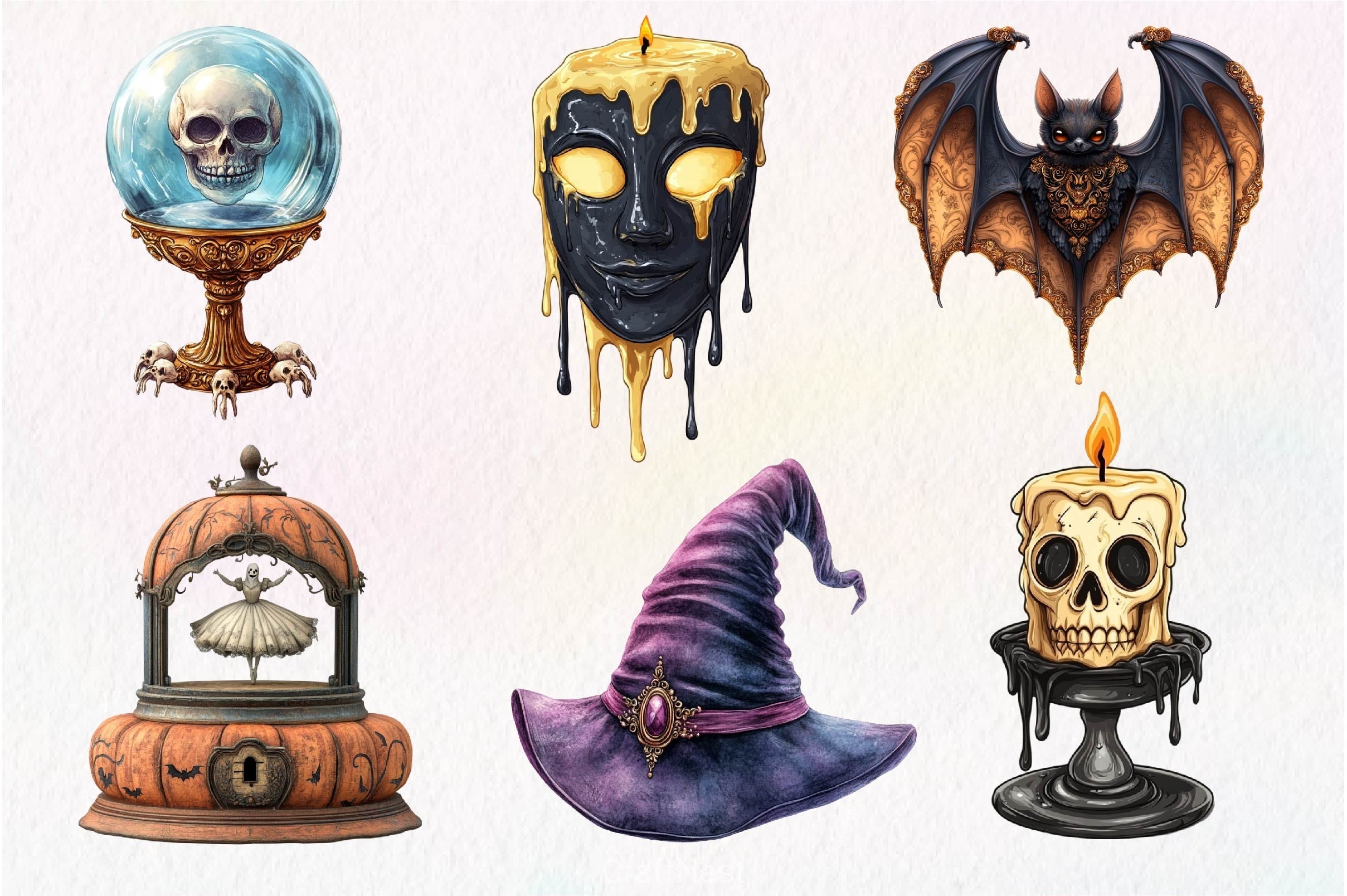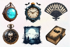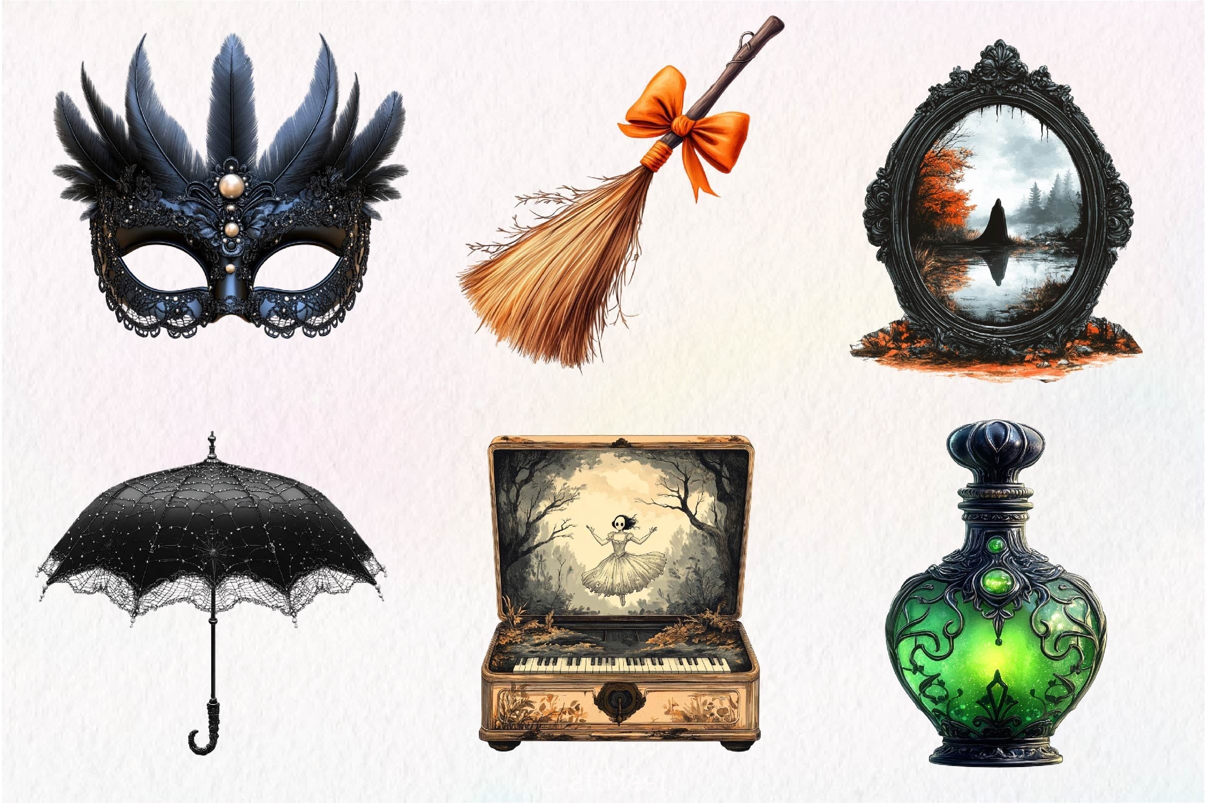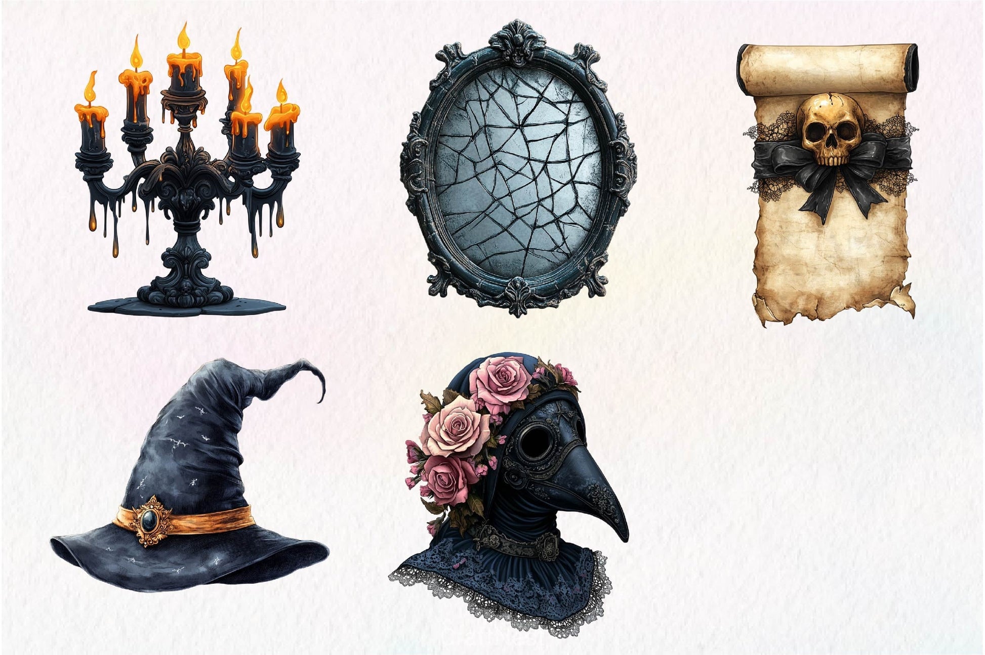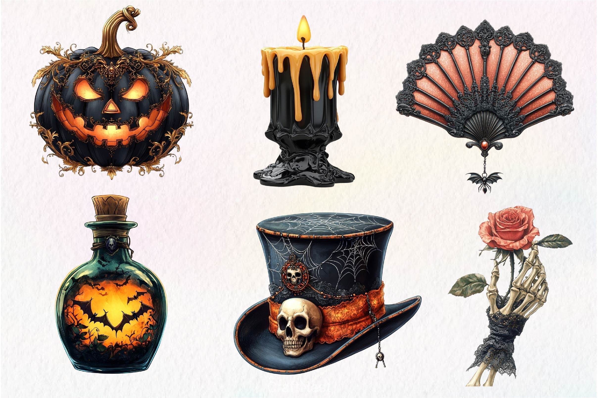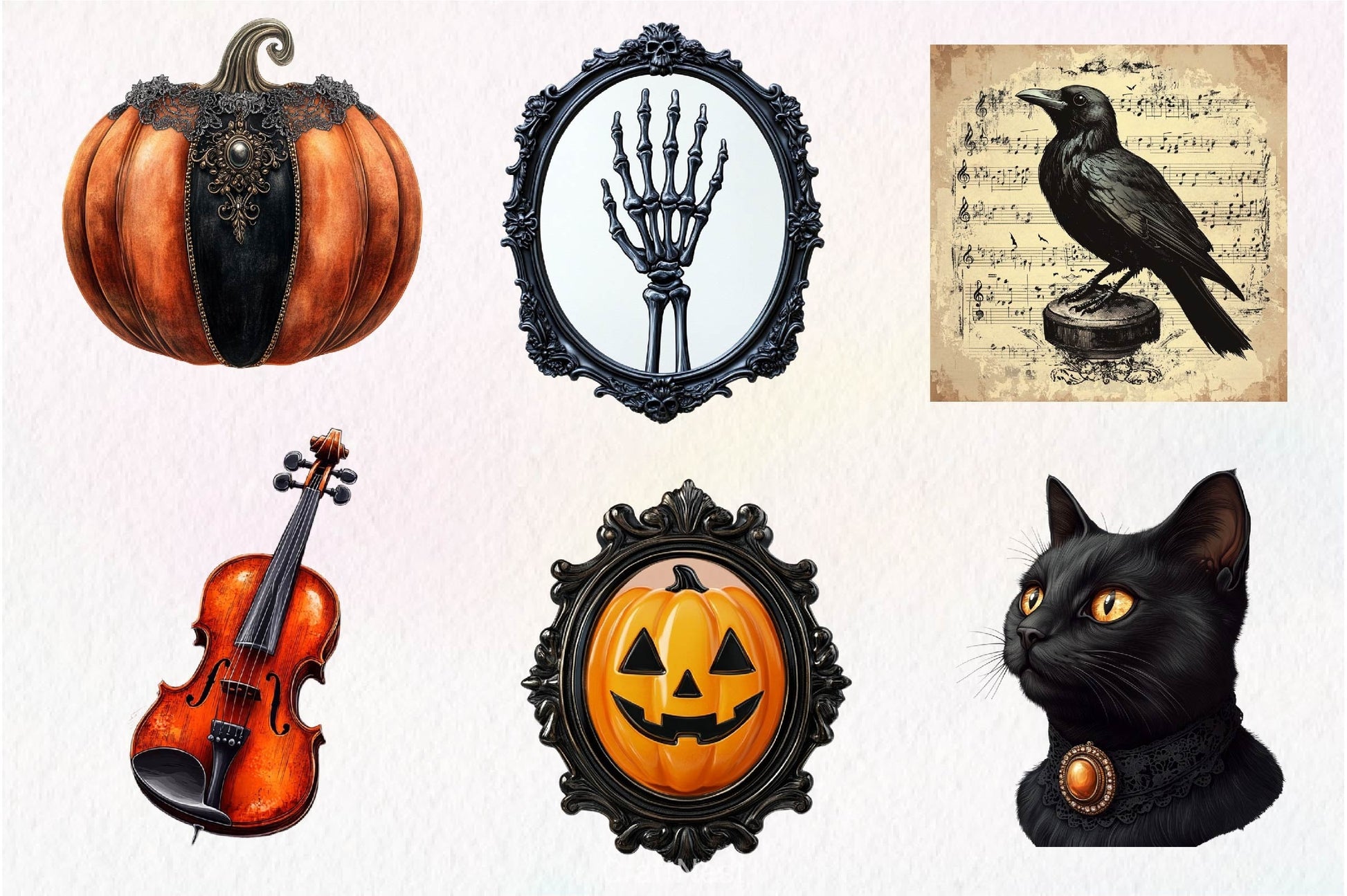Elegant Victorian Halloween elements for vintage spooky projects.