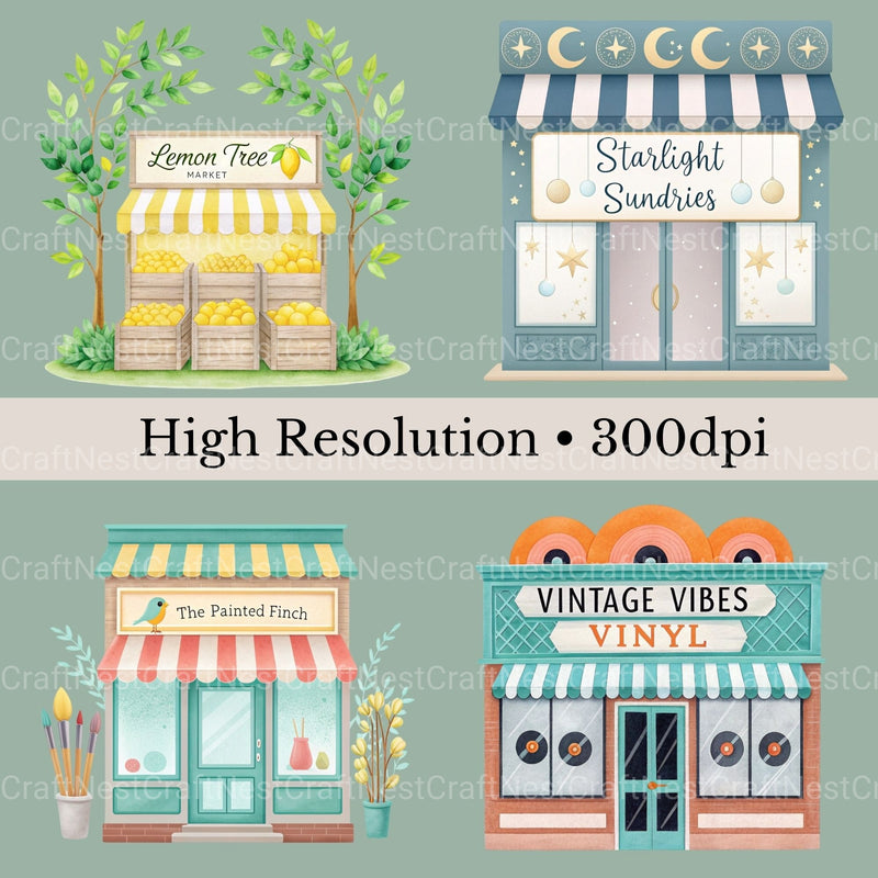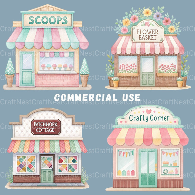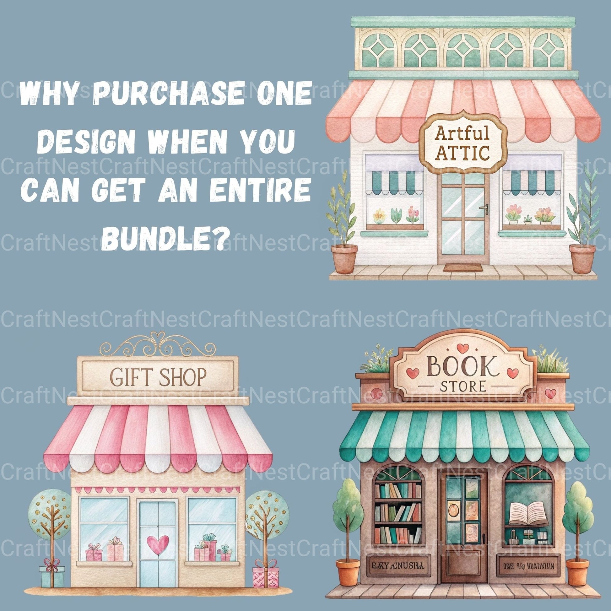 Browse with this Village Shops 15 Clipart Bundle, featuring charming village shop designs, ideal for cottage travel crafts.